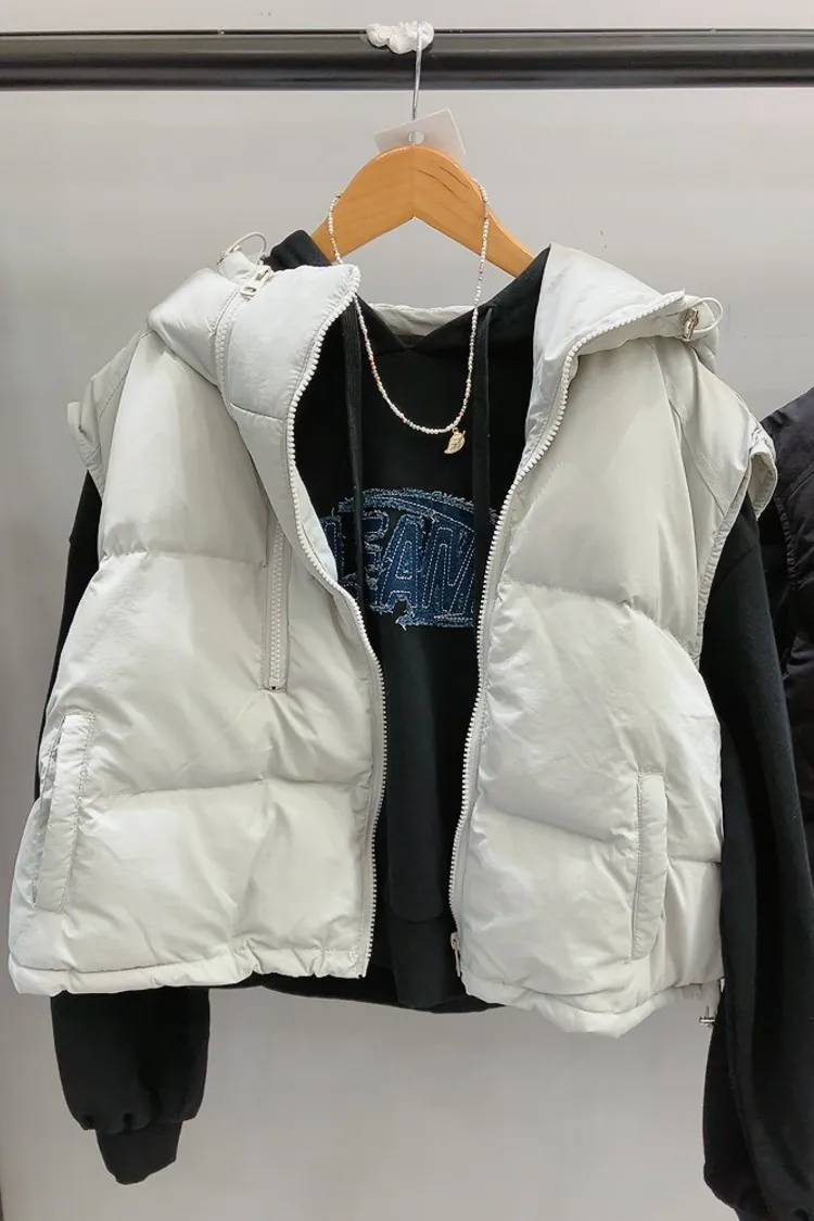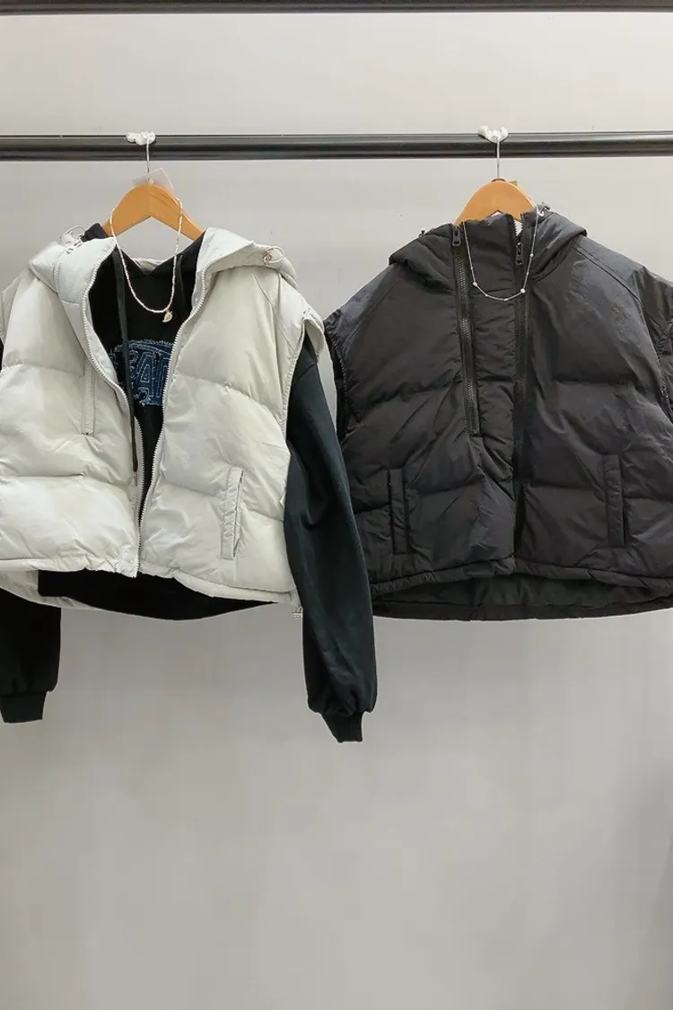 個性拉鍊領連帽鋪棉背心