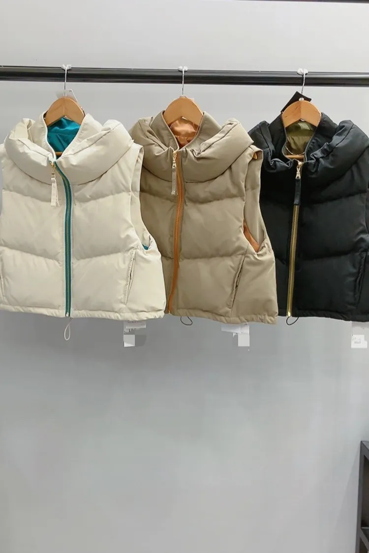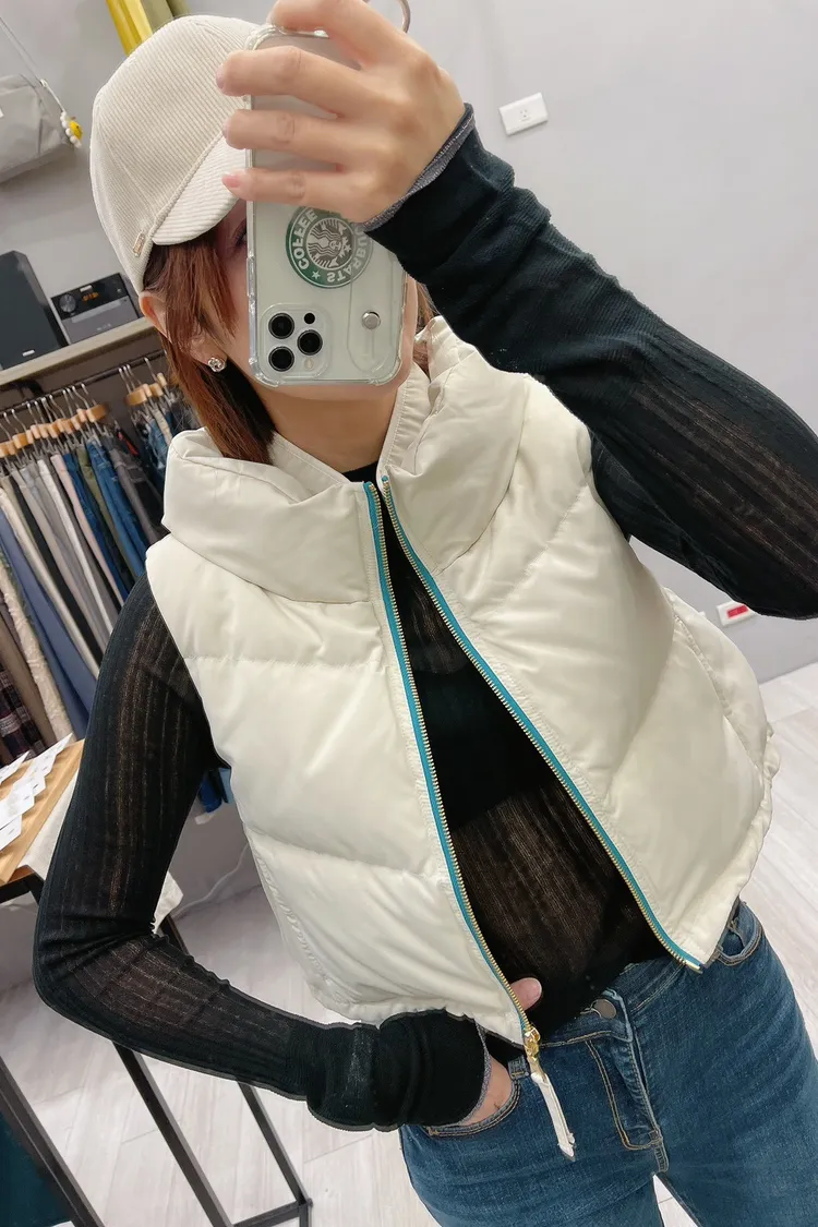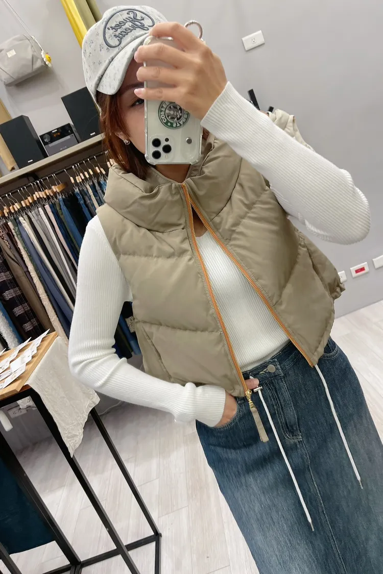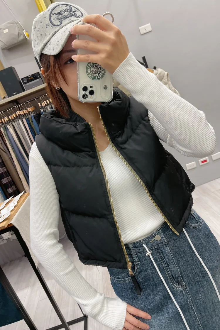 撞色拉鍊短版蓬蓬背心