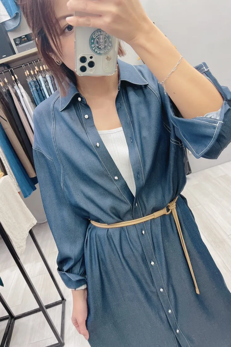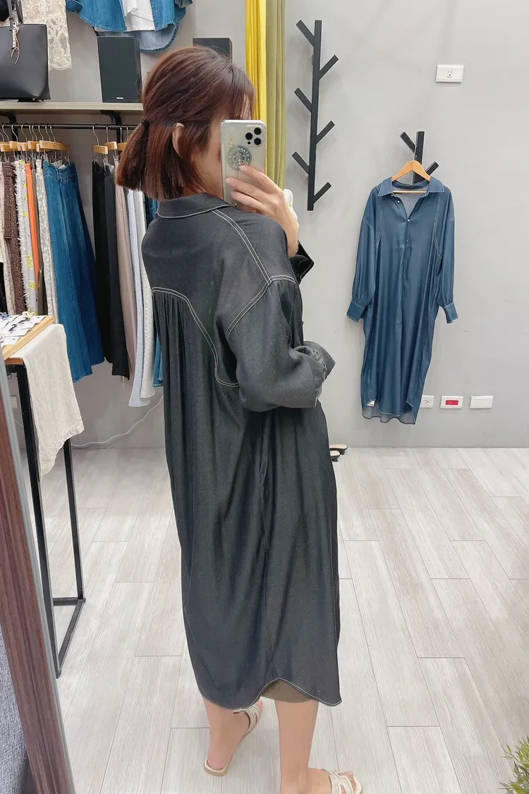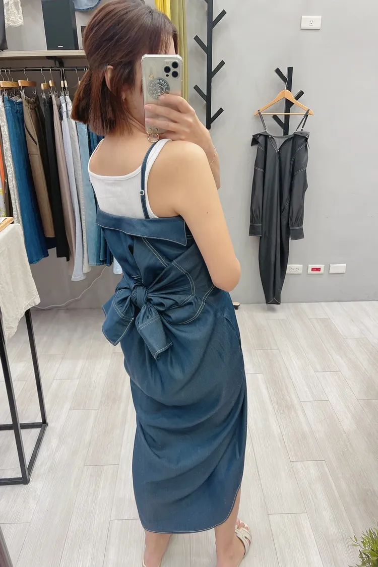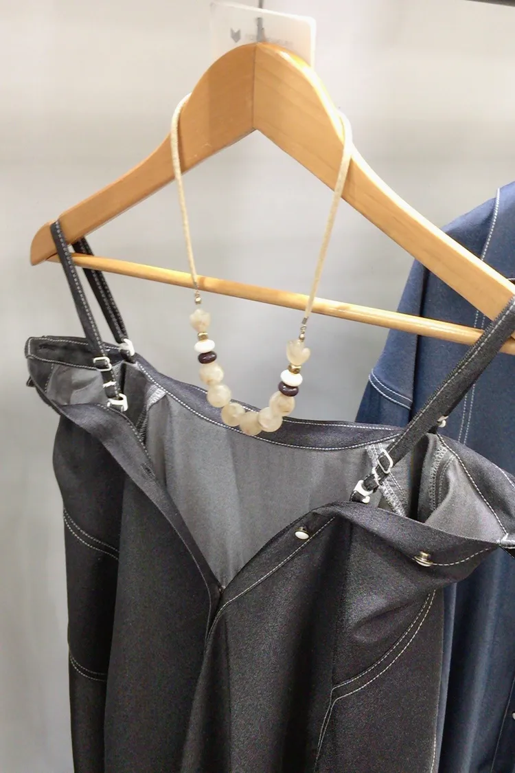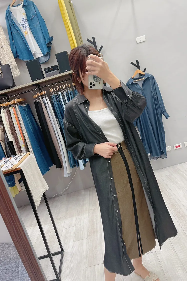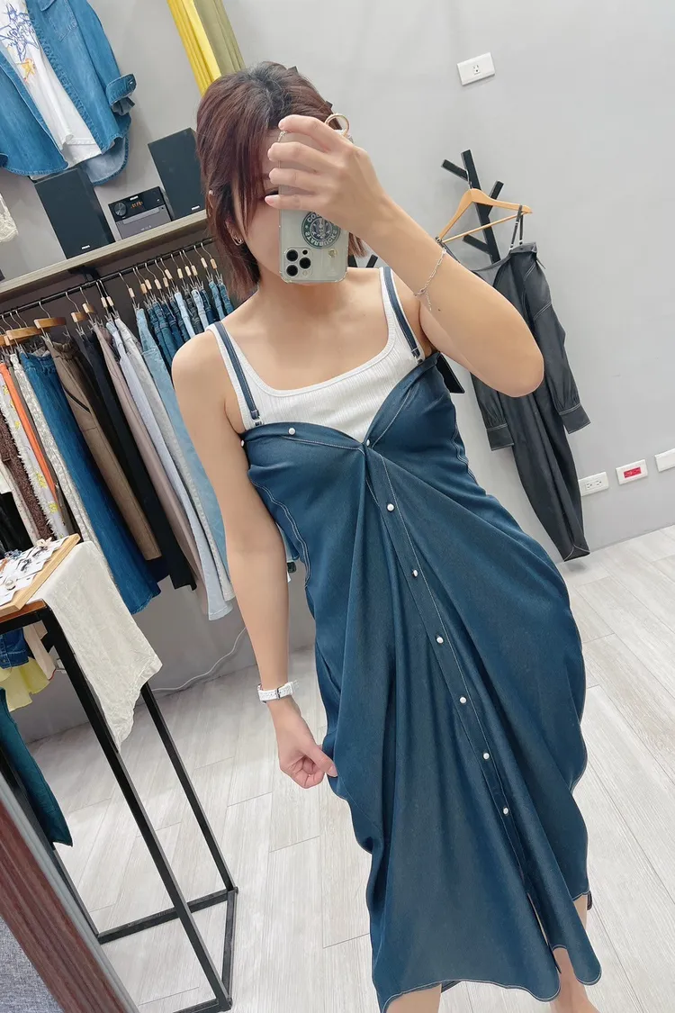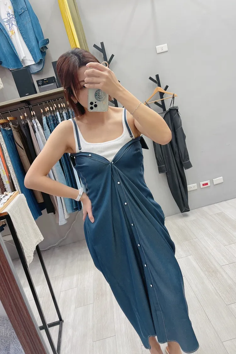 白釉釦襯衫版細肩帶洋裝外罩