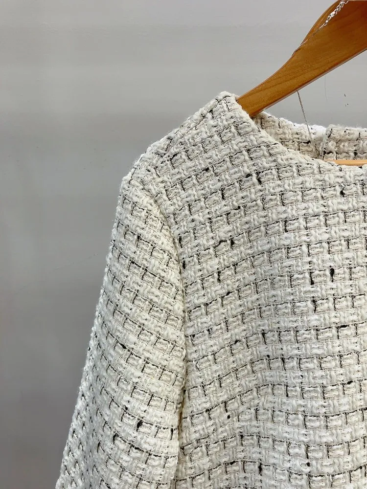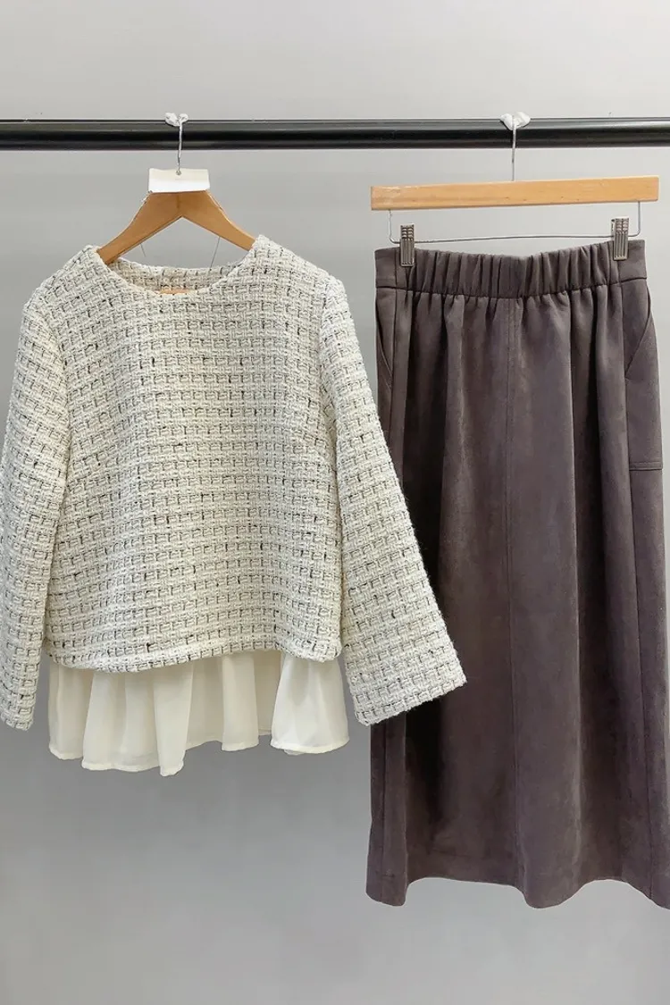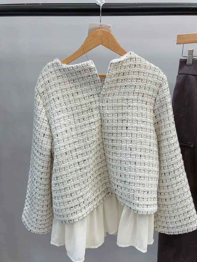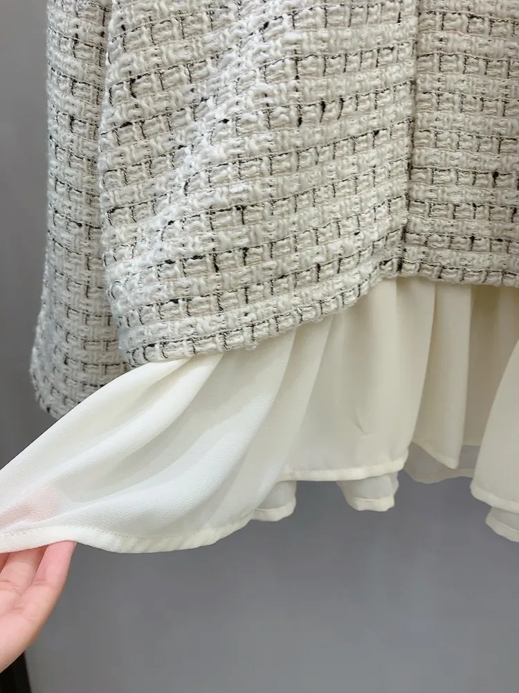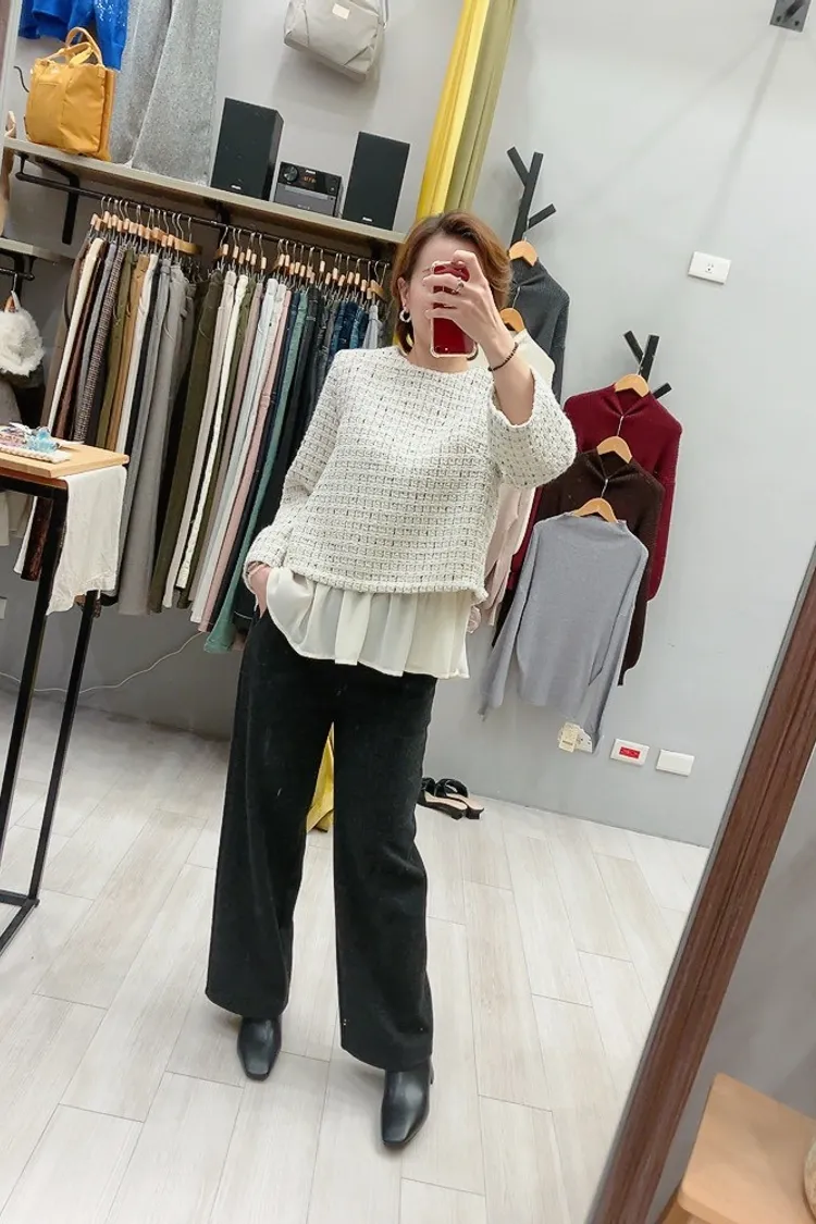 經典小香風遇上柔美雪紡襬,剛剛好的甜與優雅🤍不規則雪紡下襬增加層次感,走動時自然飄逸,視覺更顯纖細。搭配窄褲或裙裝都好看,是一件不用想搭配就很出色的上衣。 ✔ 修飾腰腹線條✔ 拉長比例不顯臀✔ 不貼身也不顯臃腫