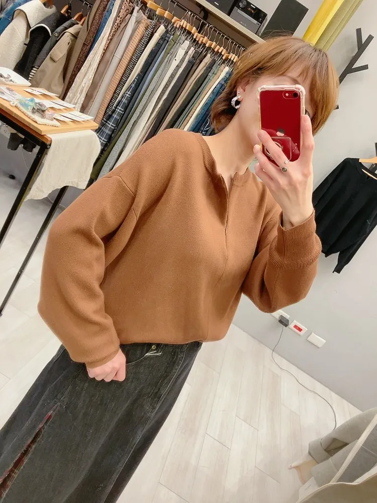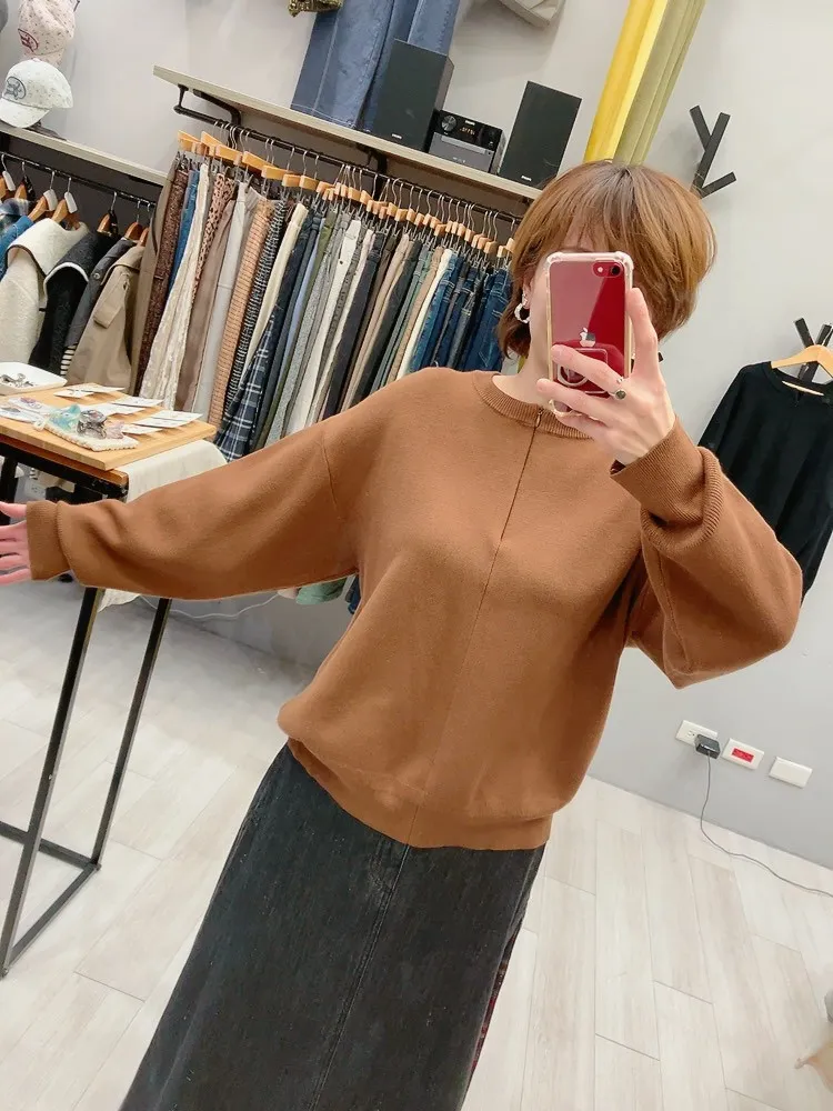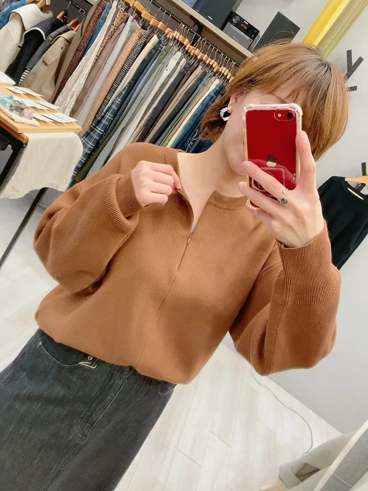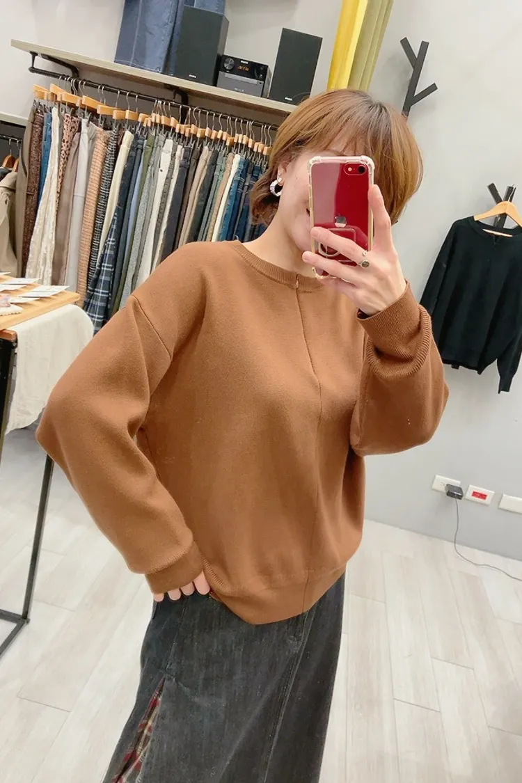 隱形拉鍊圓領針織外套上衣