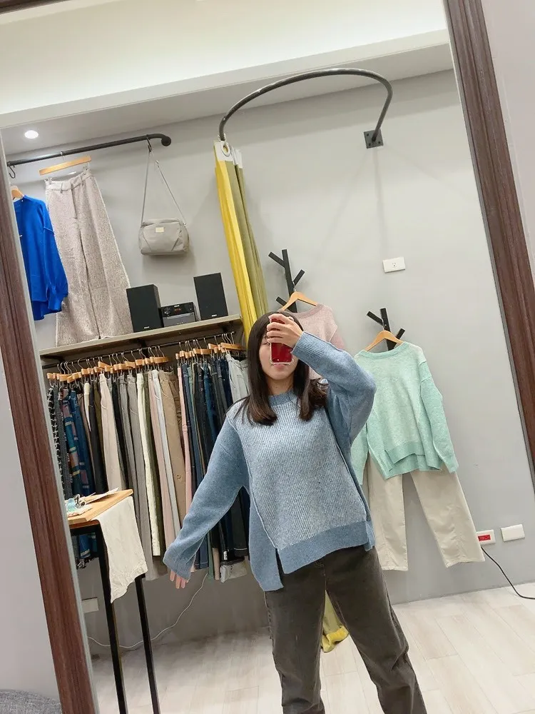 馬卡龍色系配色,自帶溫柔濾鏡細緻螺紋織法,視覺顯瘦又有層次感寬鬆落肩版型,包容身形、穿起來超舒服下擺側開衩設計,不貼身