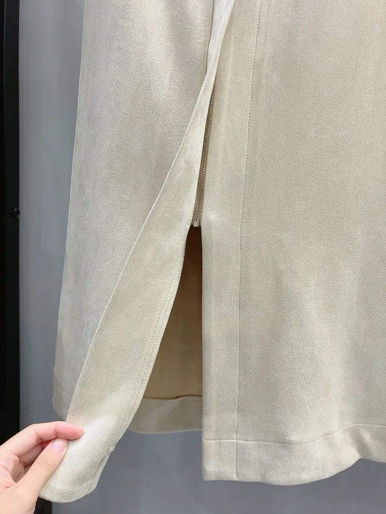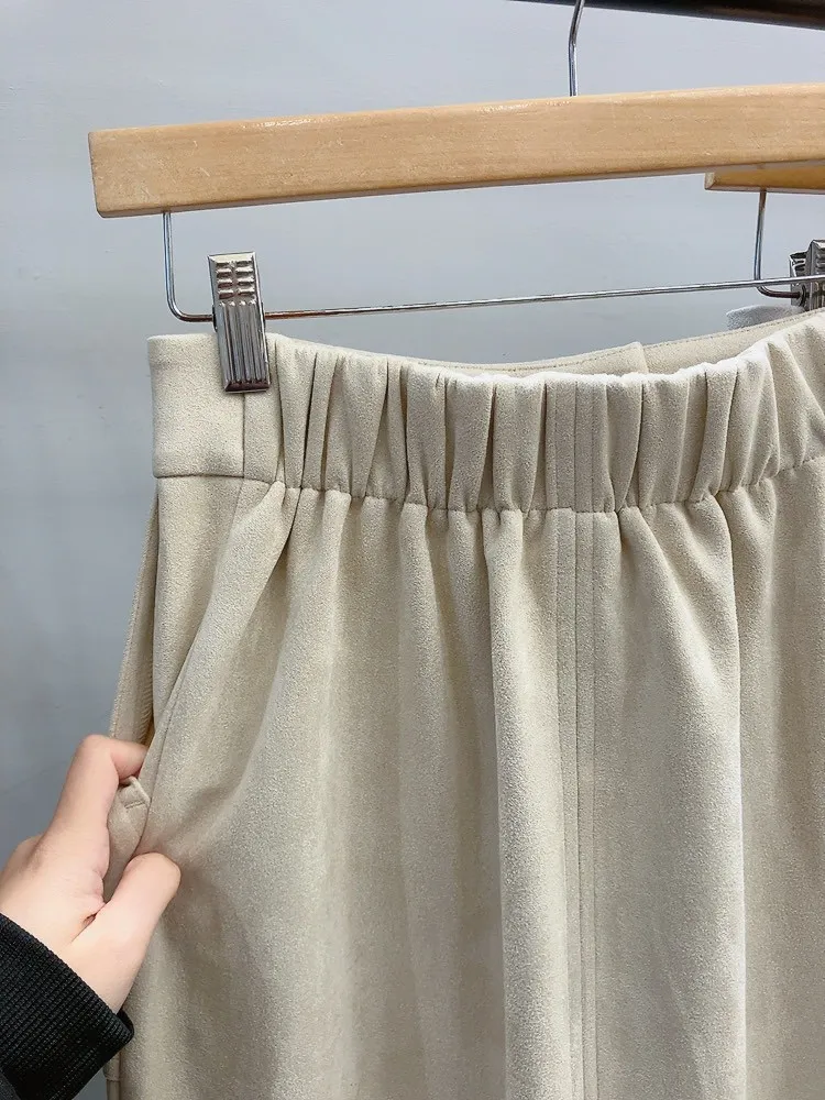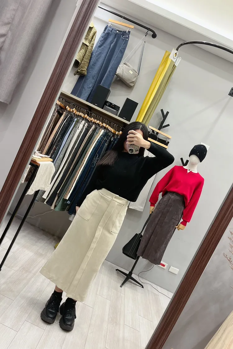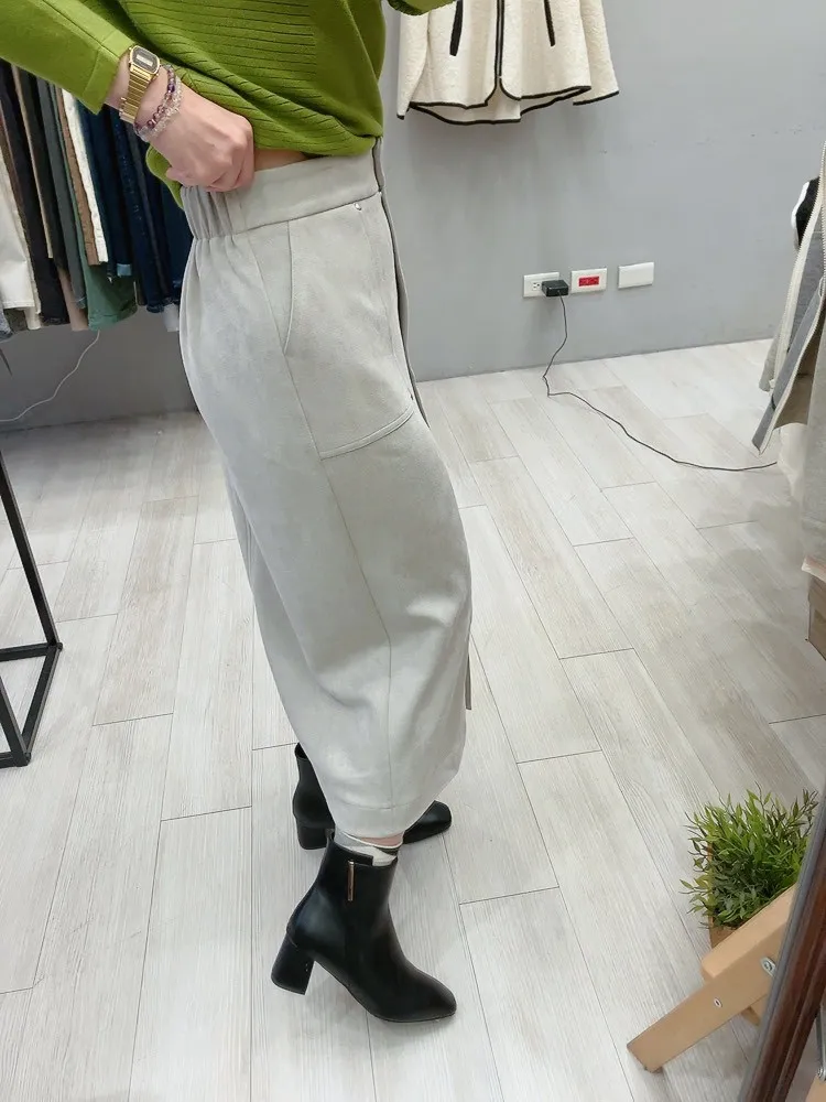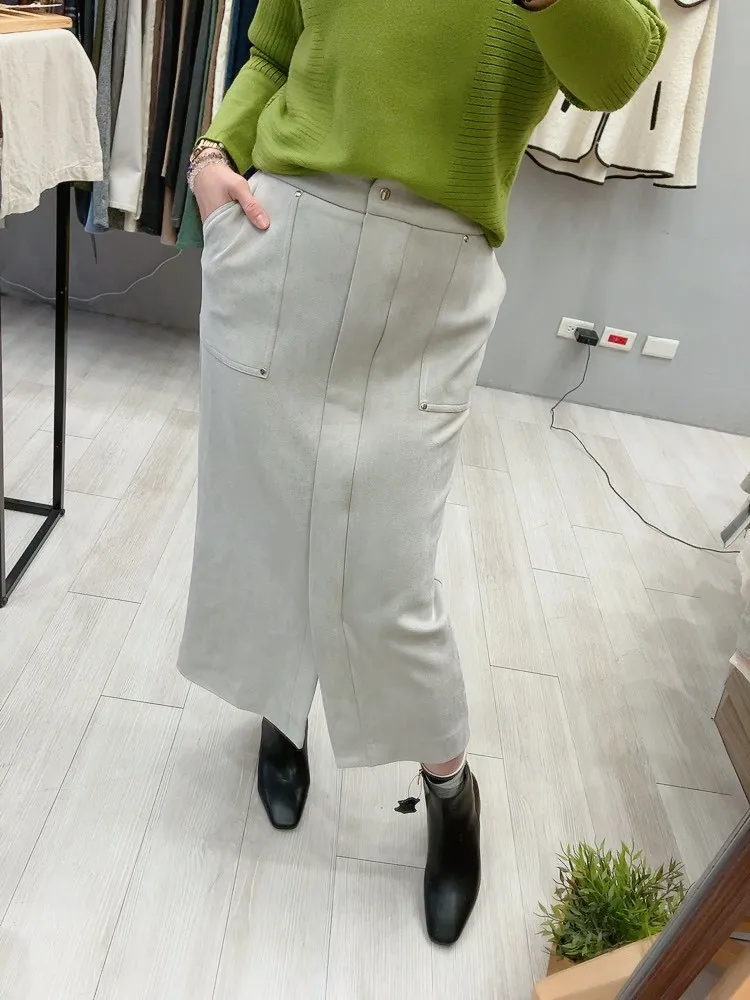 銀鉚釘釦口袋仿麂皮直裙