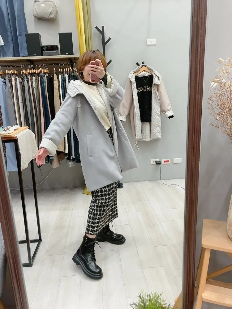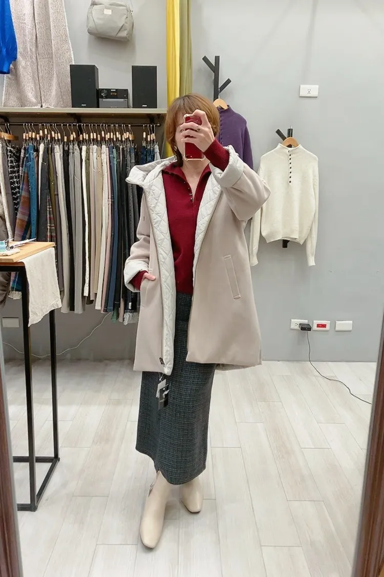 兩面穿連帽中長大衣外套