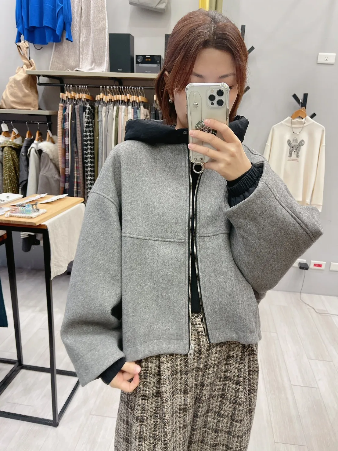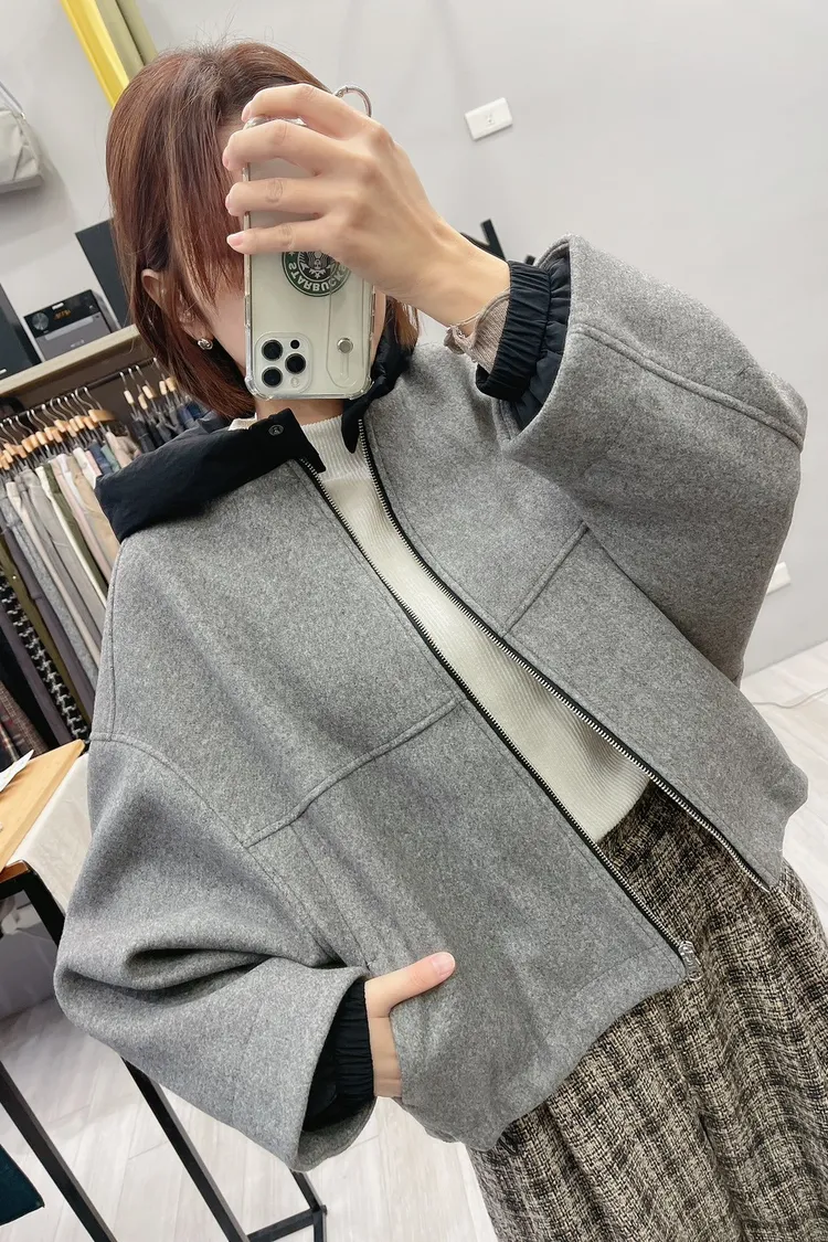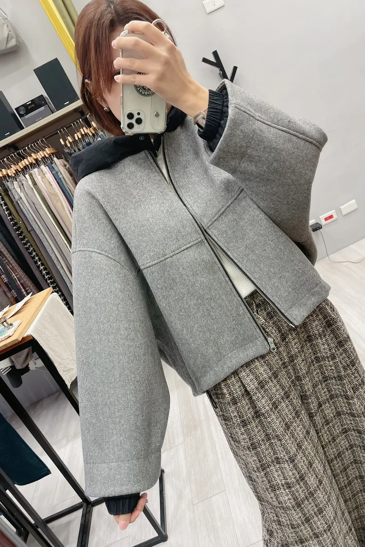 毛料感、可拆鋪棉連帽、短版寬鬆、休閒+設計感