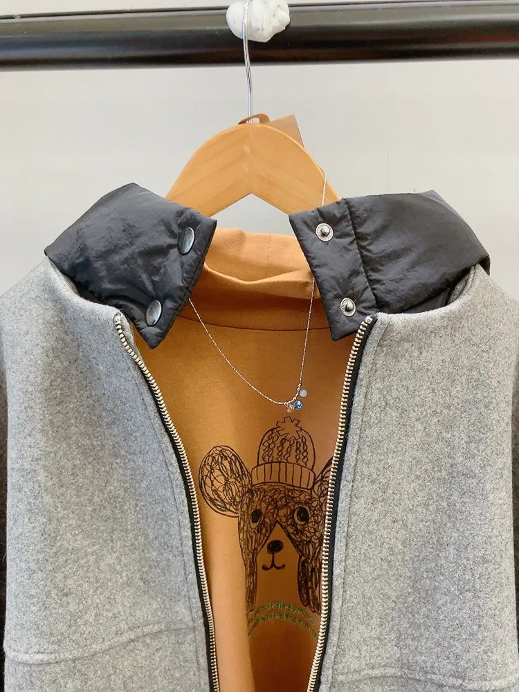 可拆鋪棉連帽毛料外套
