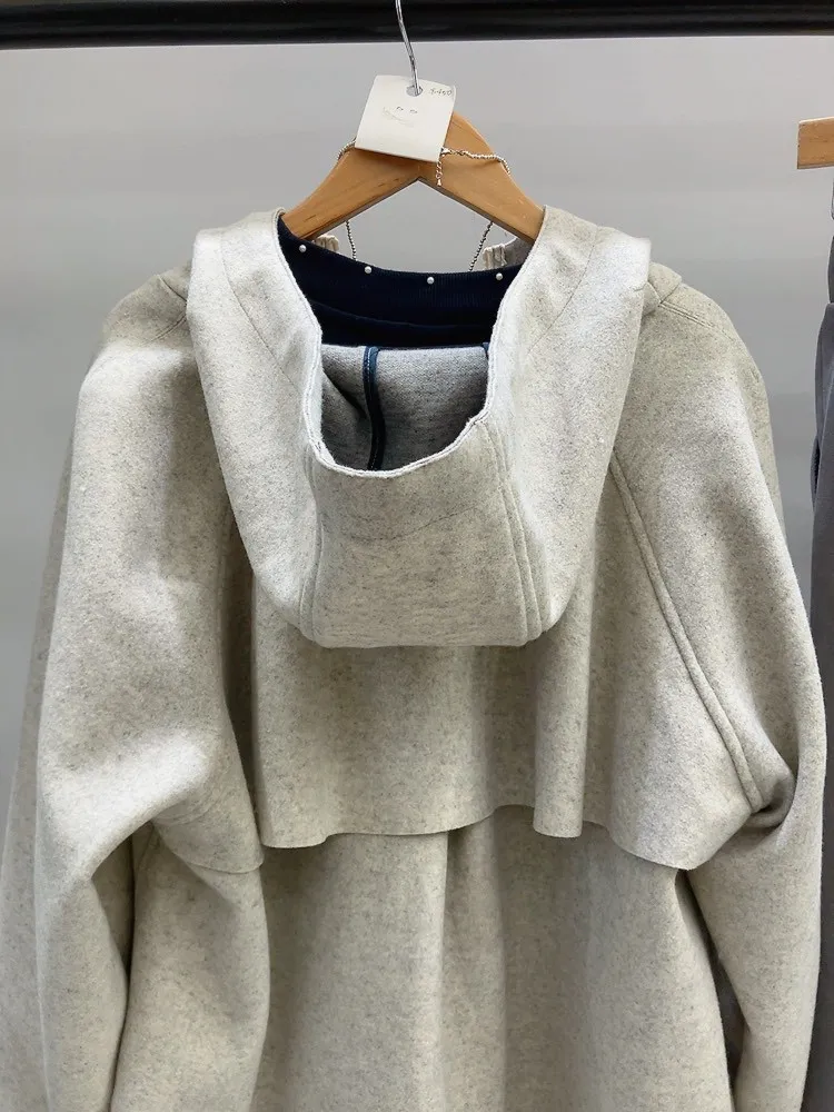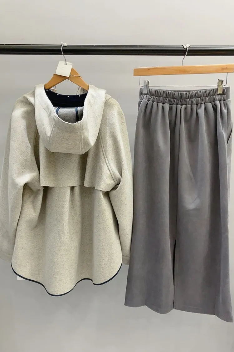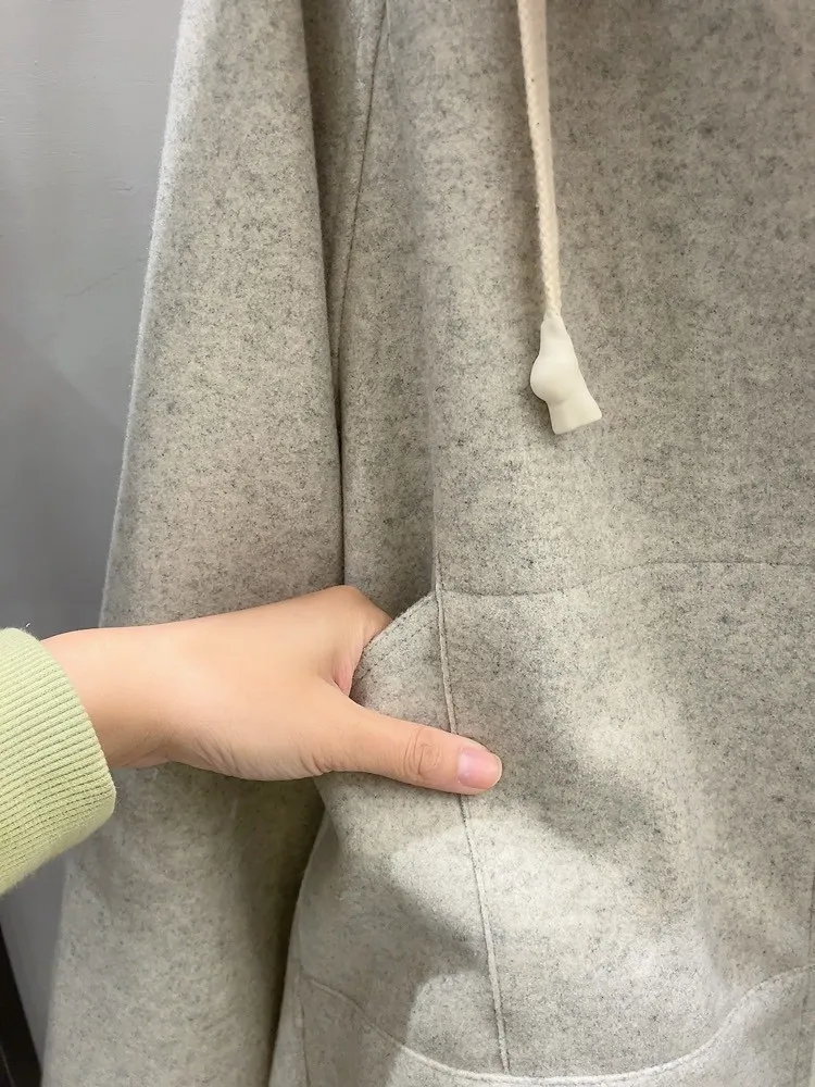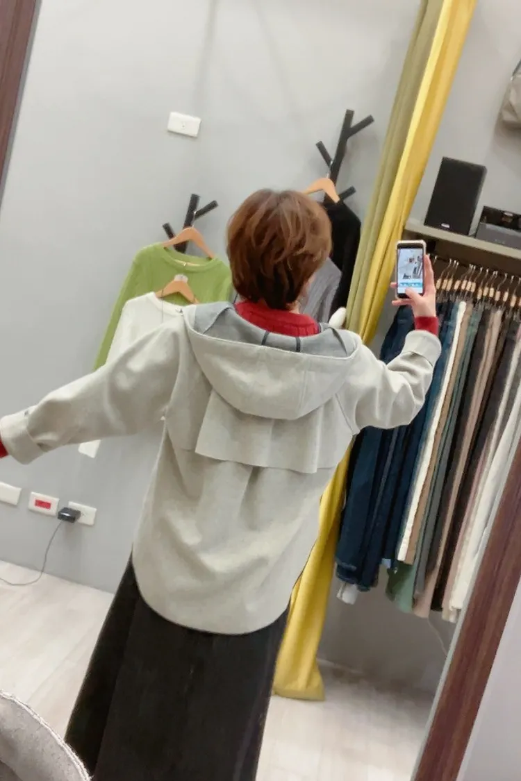 連帽內襯毛全拉鍊毛料夾克