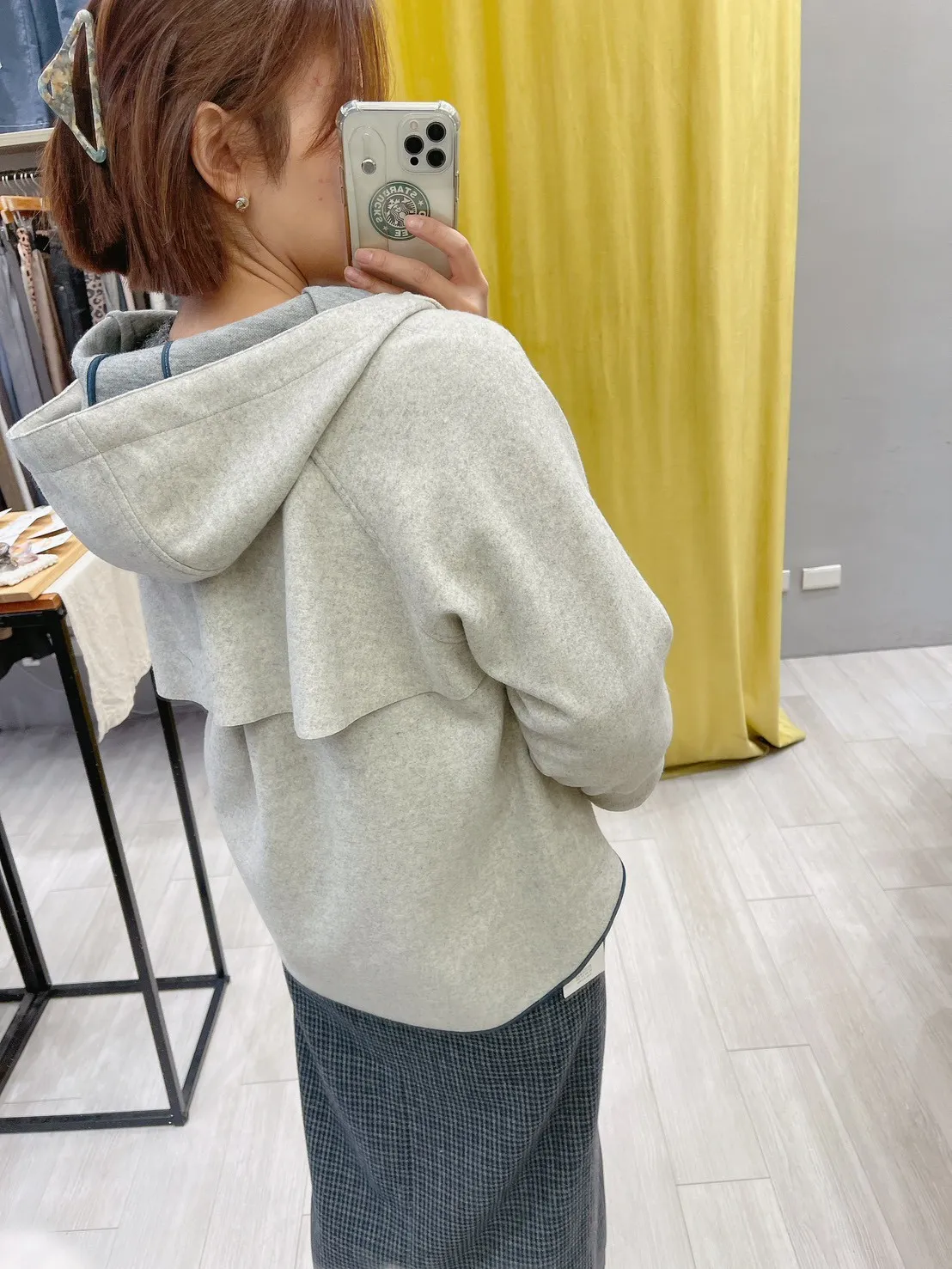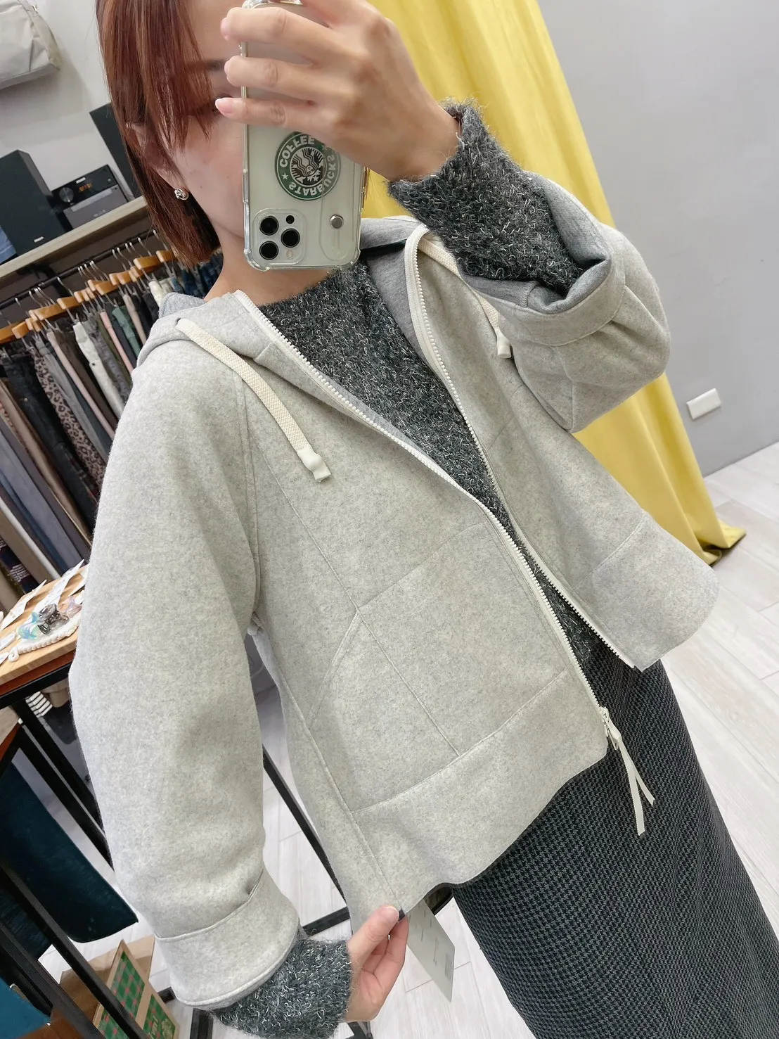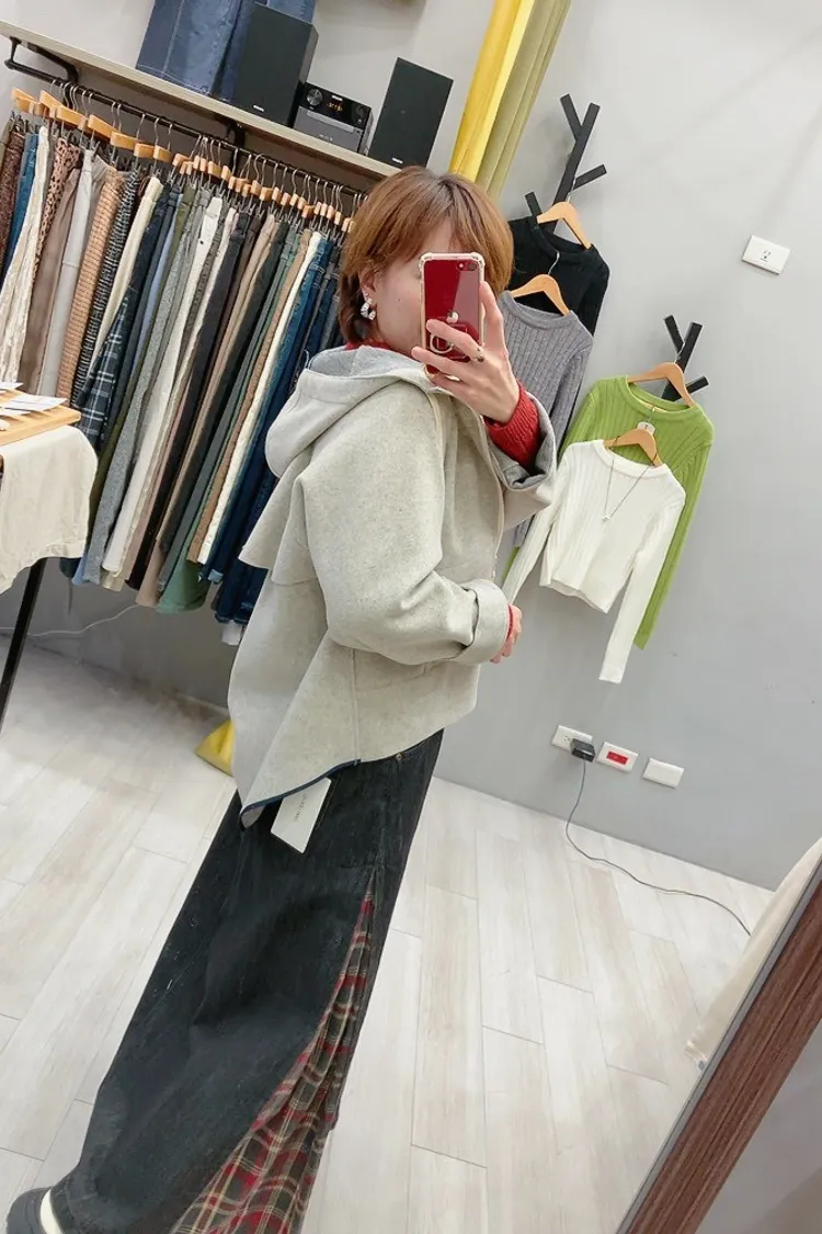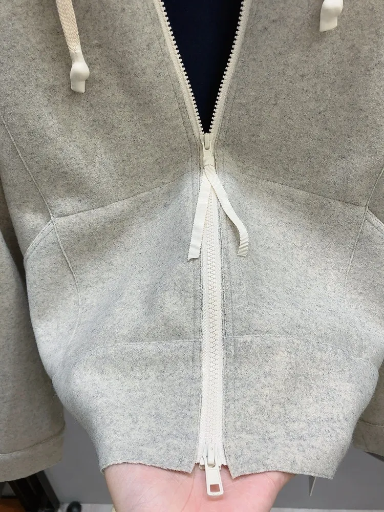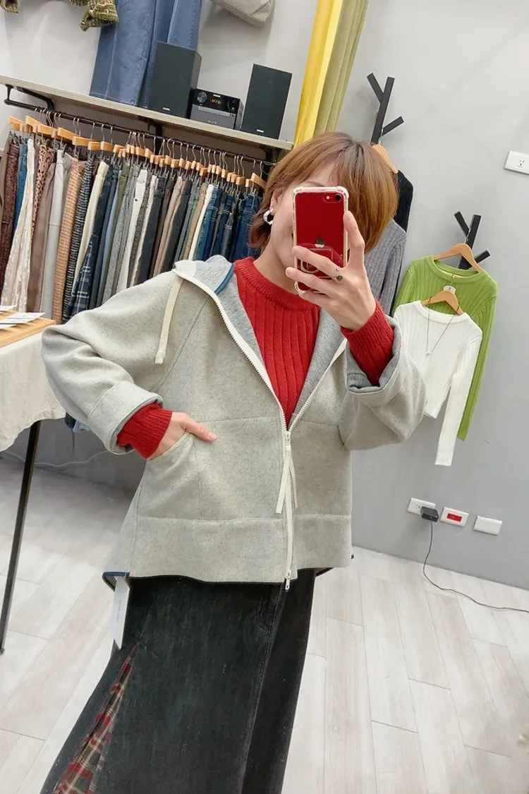 混灰薄毛呢白拉鍊外套