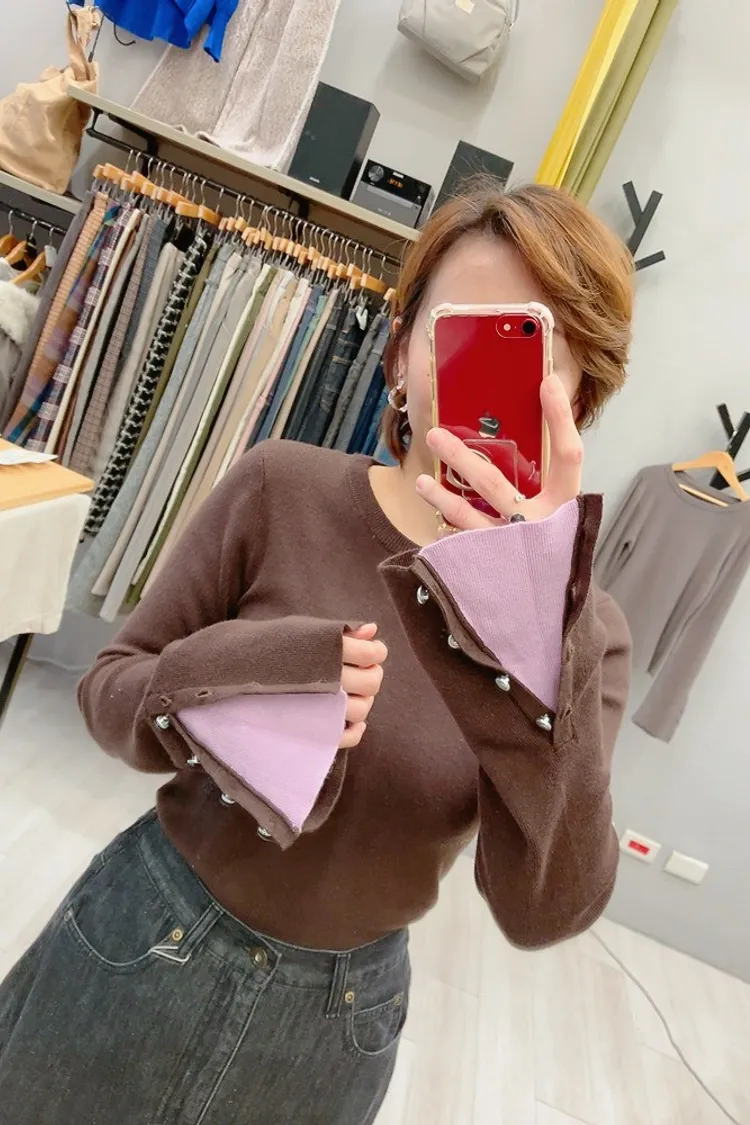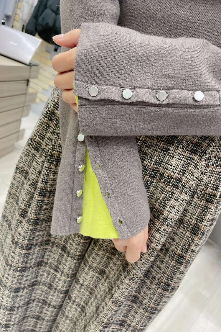 ღღღ簡約針織搭配袖口銀釦與撞色設計,低調中又藏有巧思