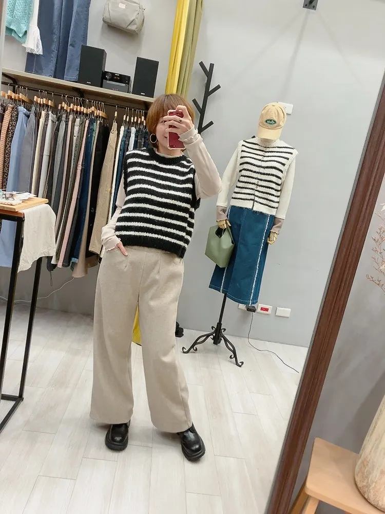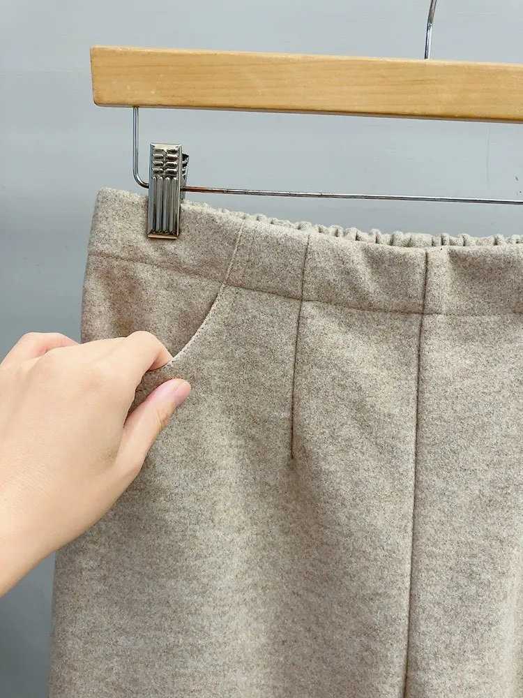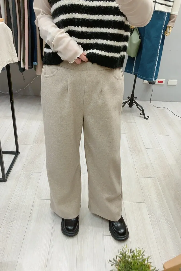 日本製羊毛鬆緊腰寬直筒