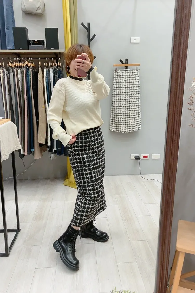 小香格紋正式中帶點溫柔感,搭襯衫、針織或短外套都很有型