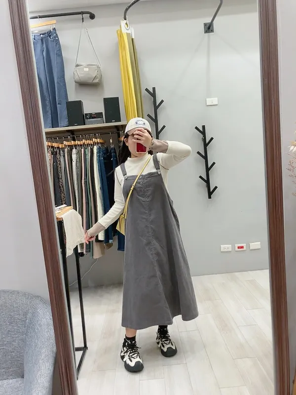 細燈芯絨三釦吊帶裙