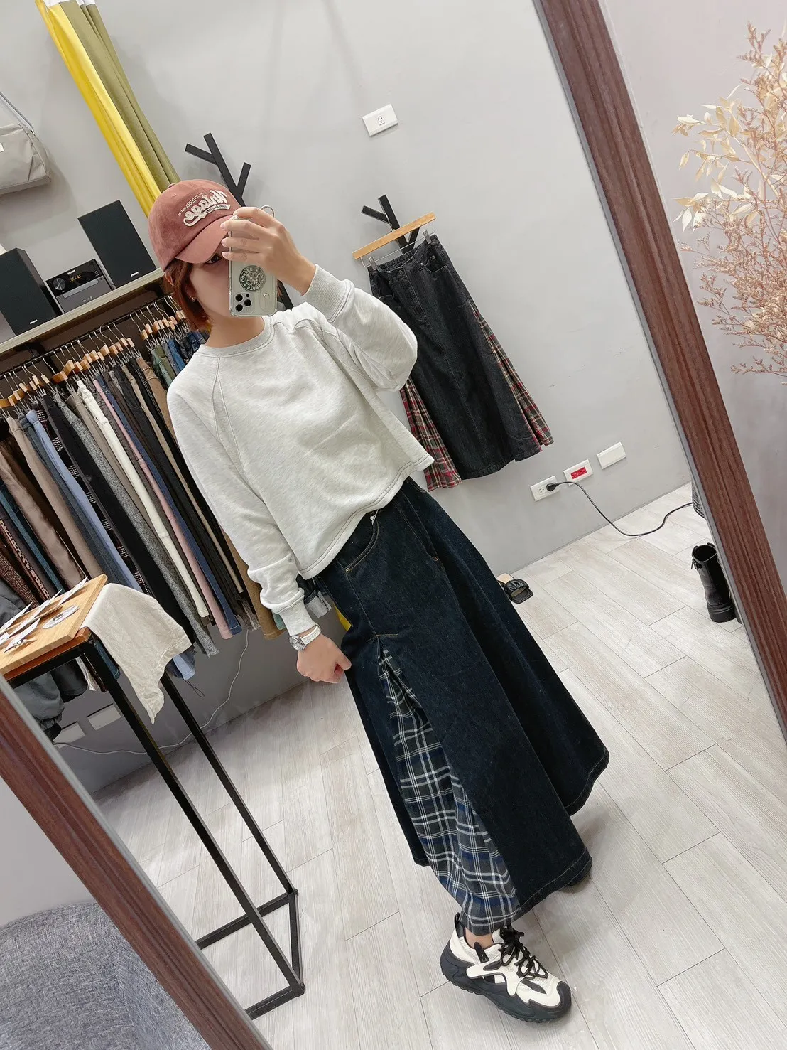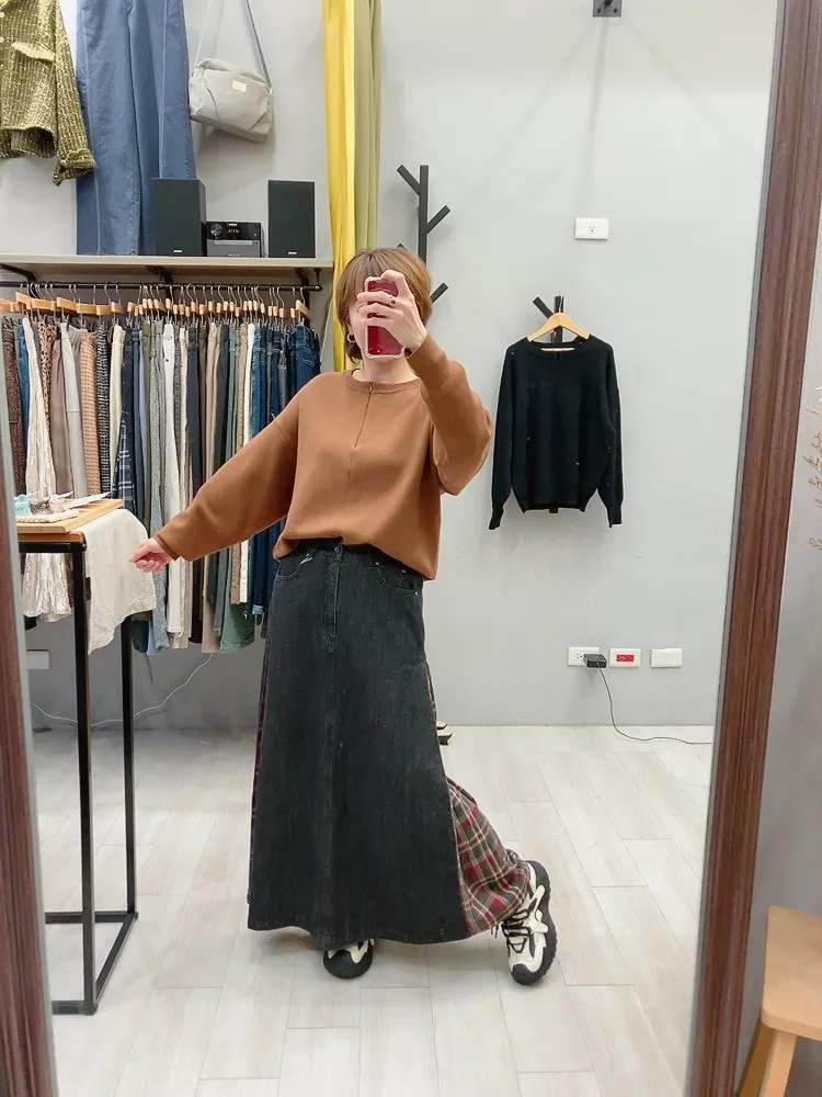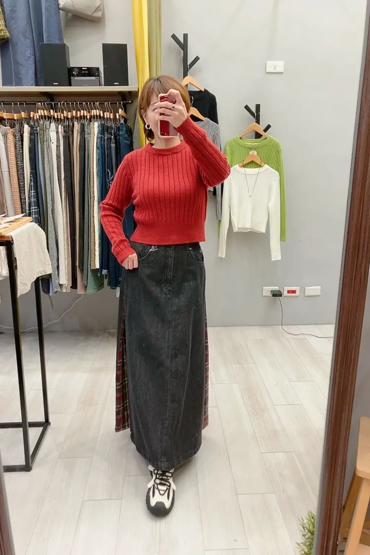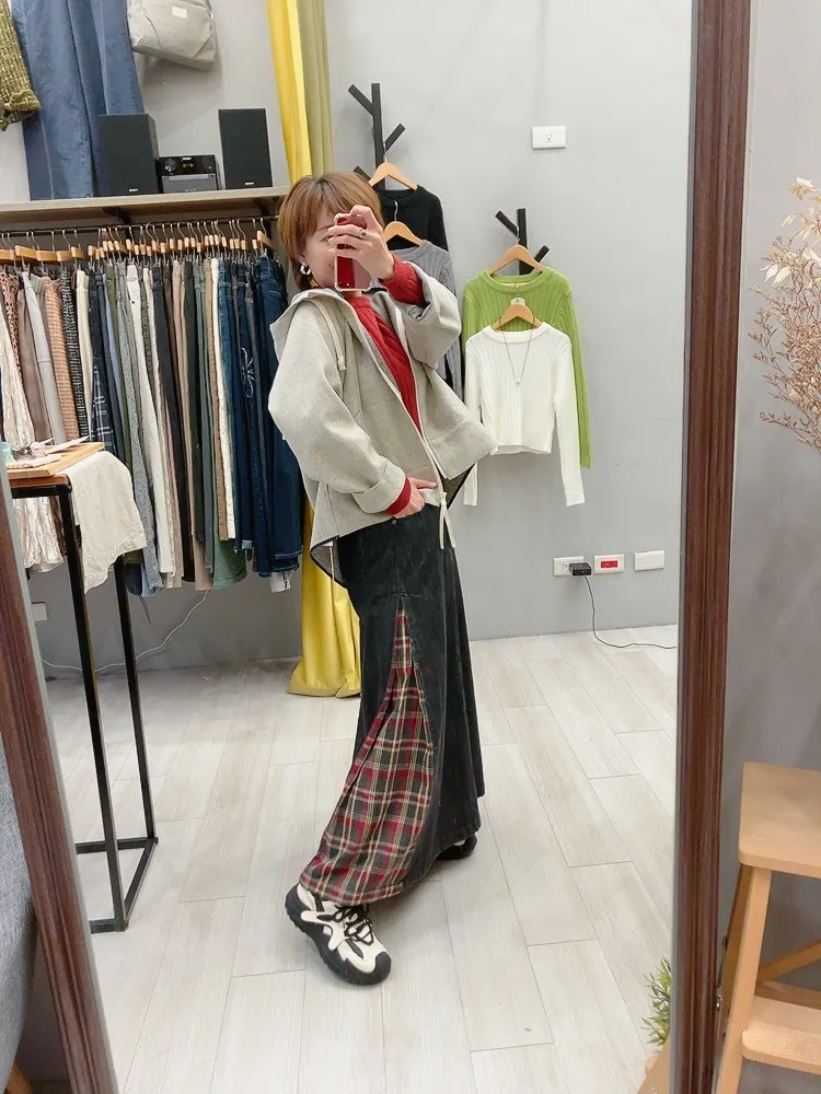 側拼格紋牛仔裙