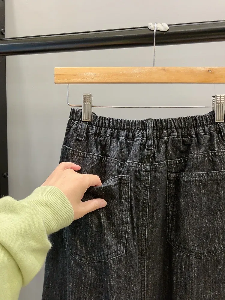 銀鉚釘釦口袋仿麂皮直裙