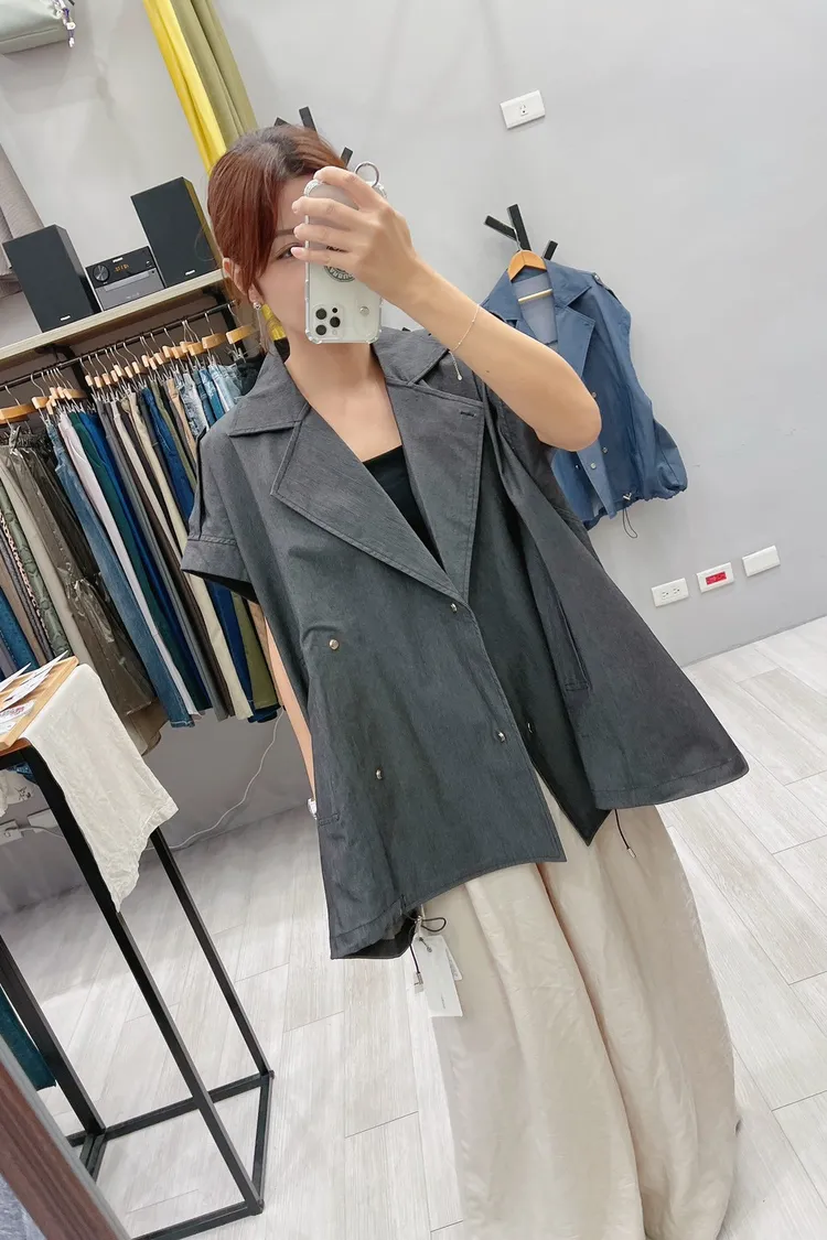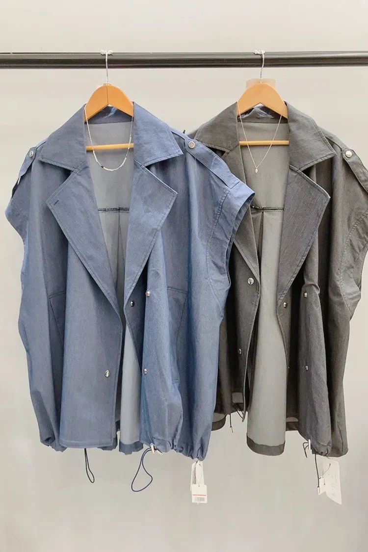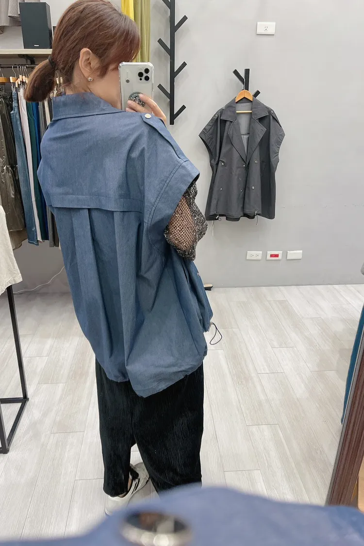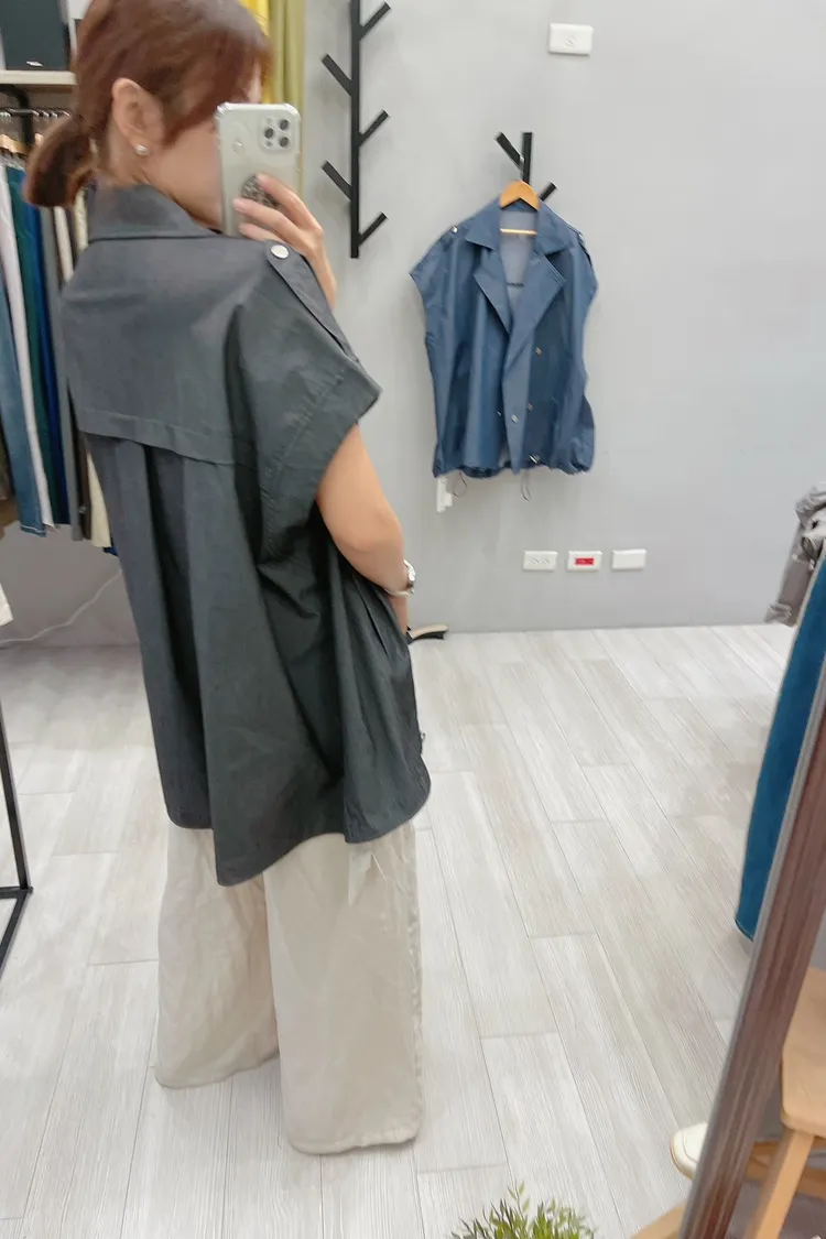 oversized 銀壓釦帥氣質感背心