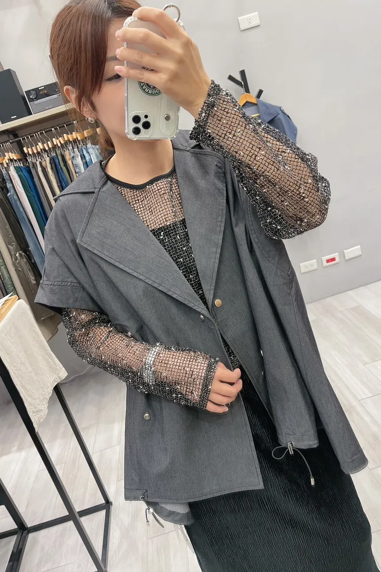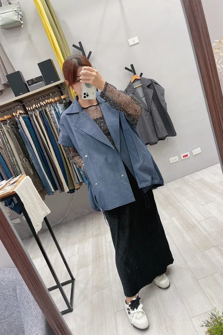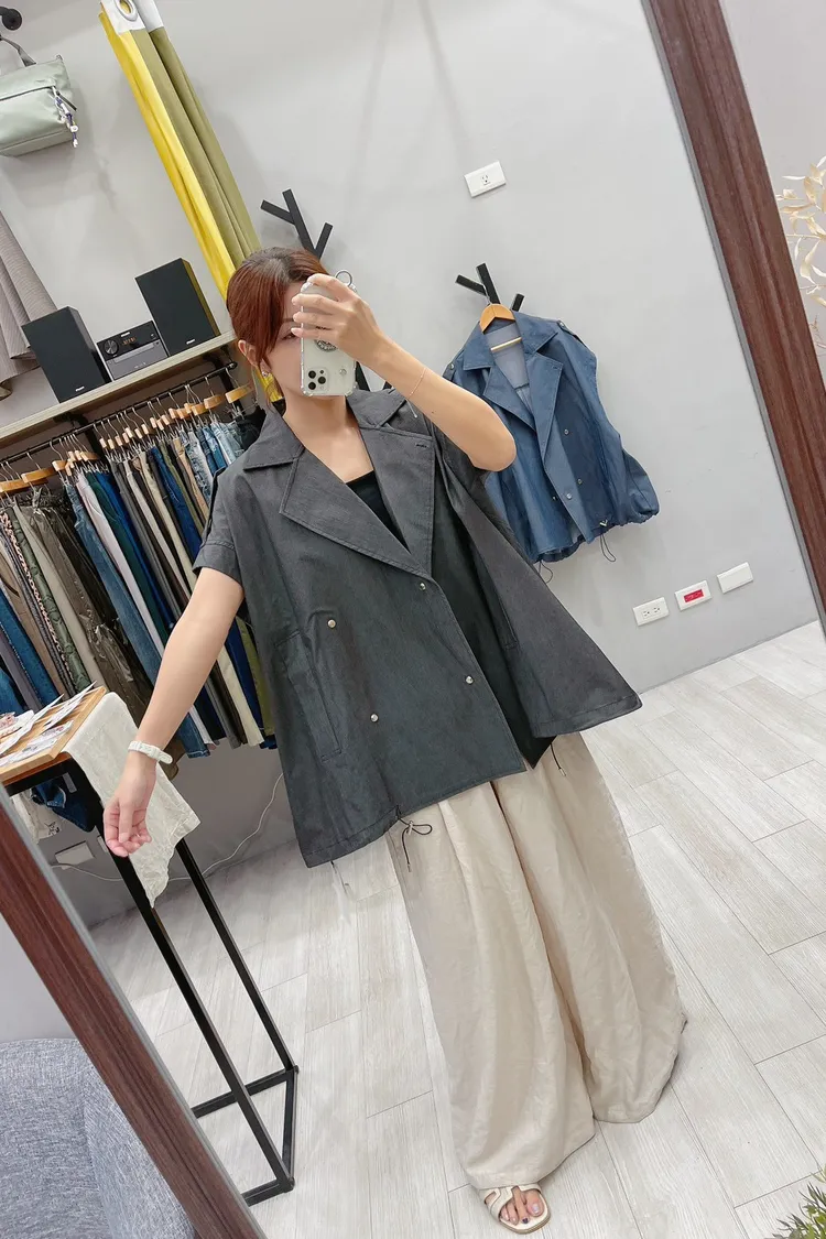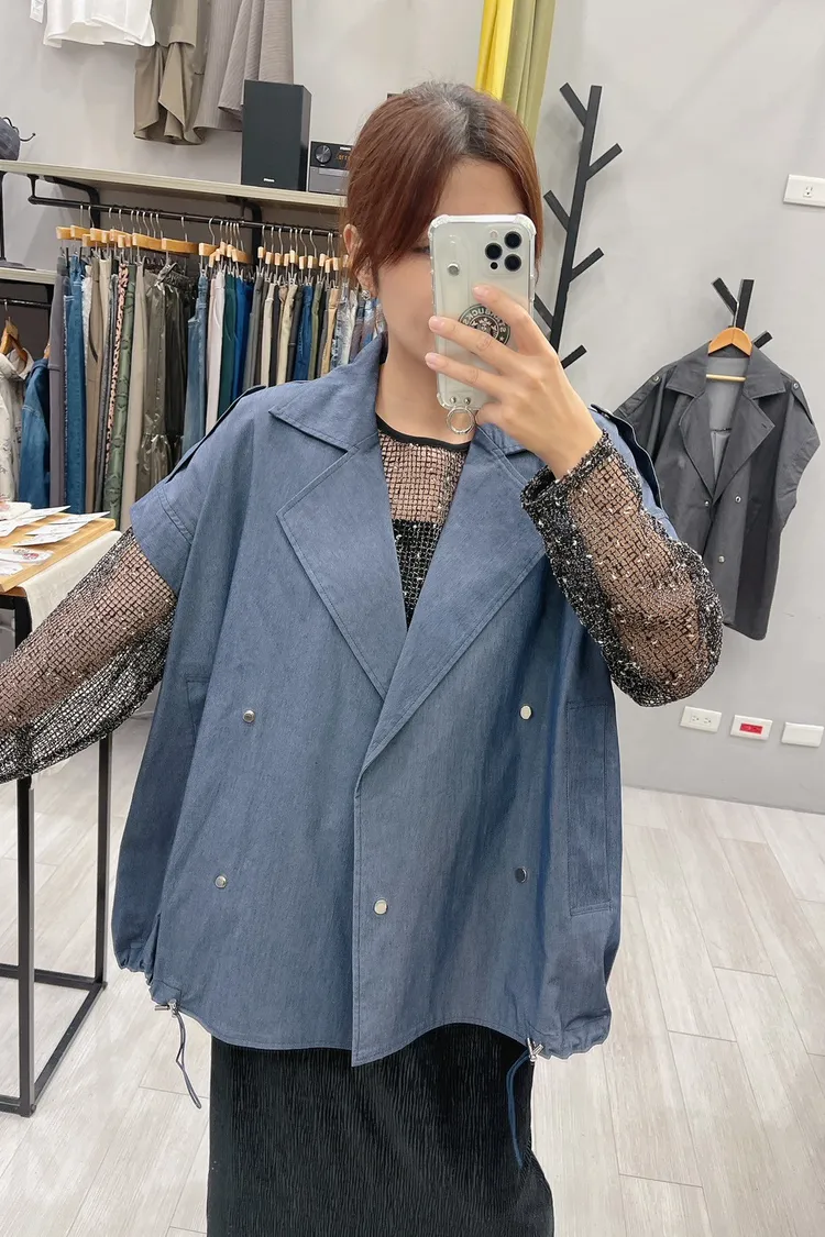 oversized 銀壓釦帥氣質感背心