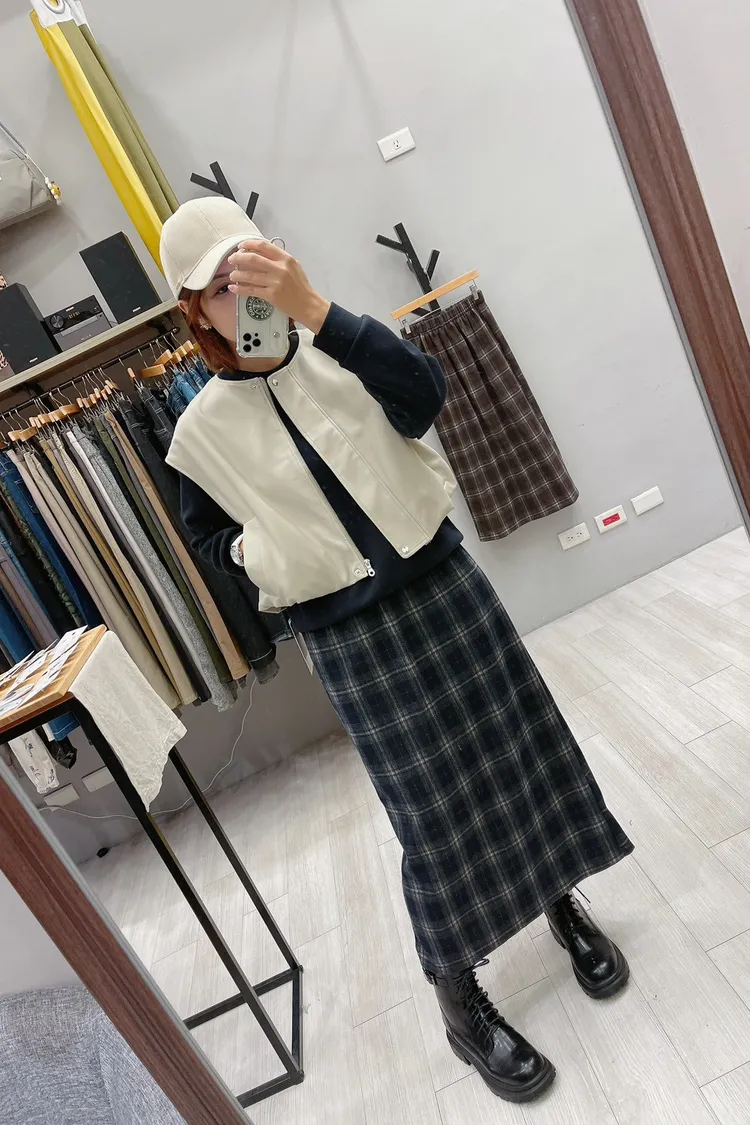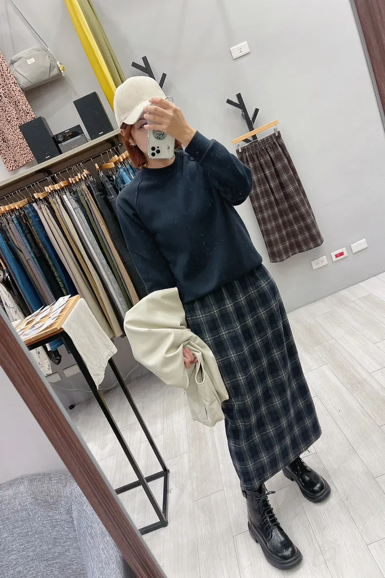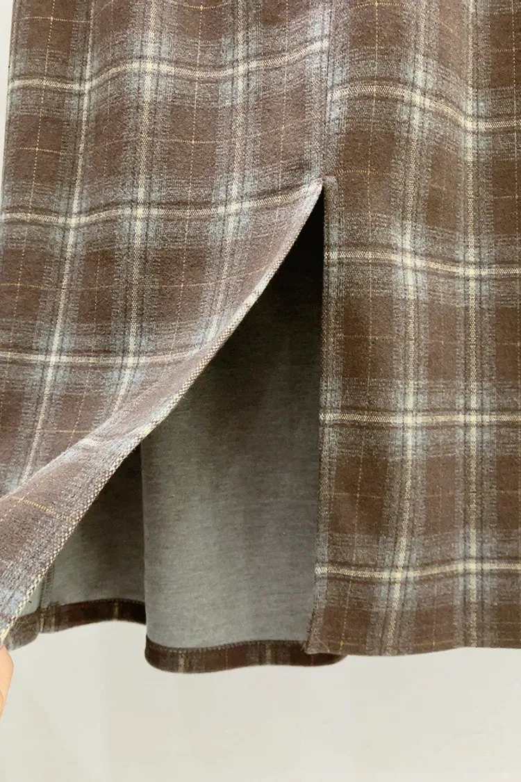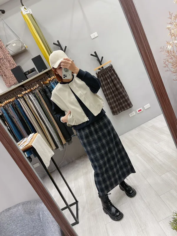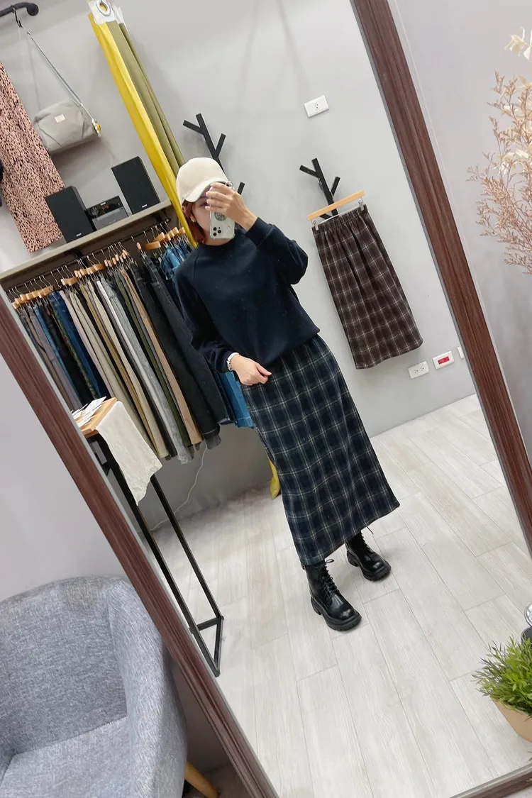 英倫格後衩直裙