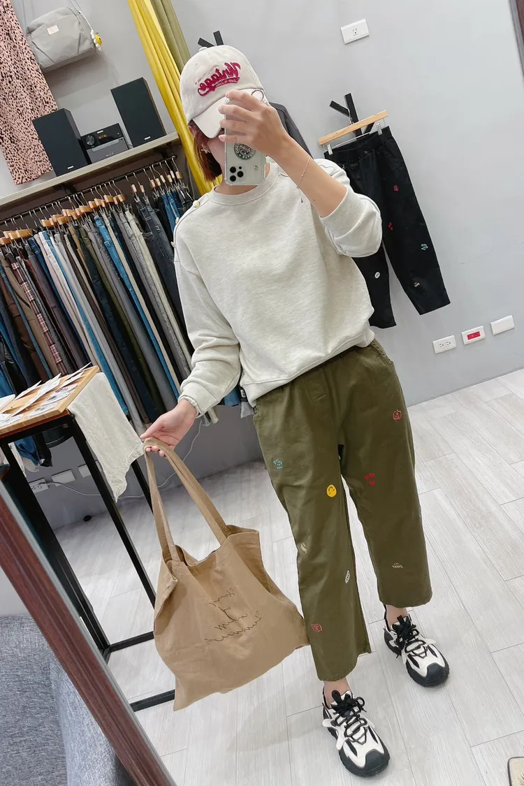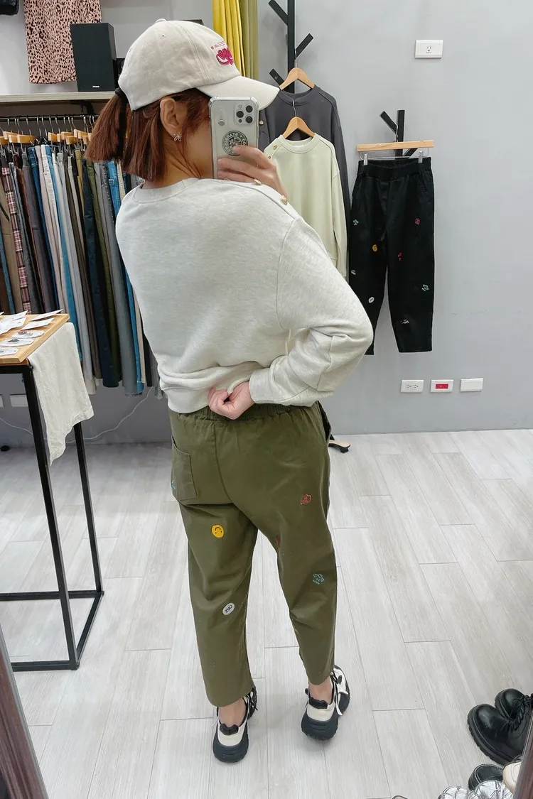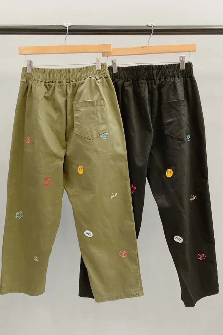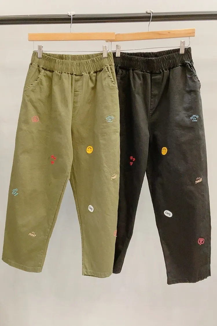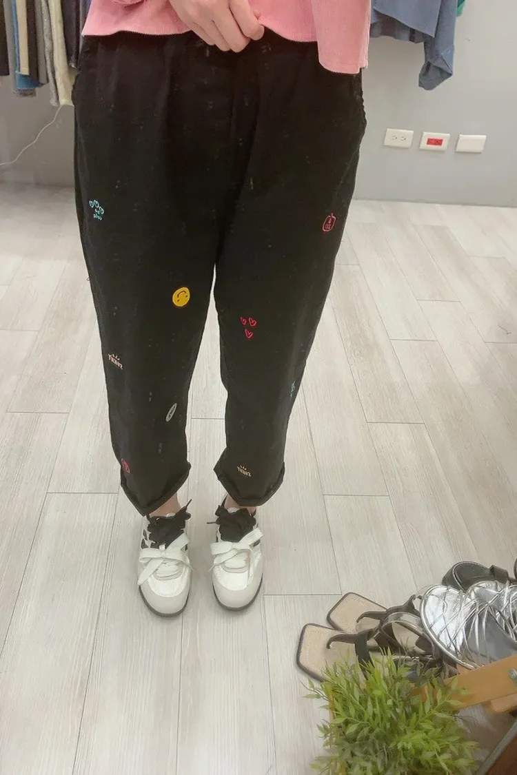 笑臉可愛徽章刺繡休閒褲