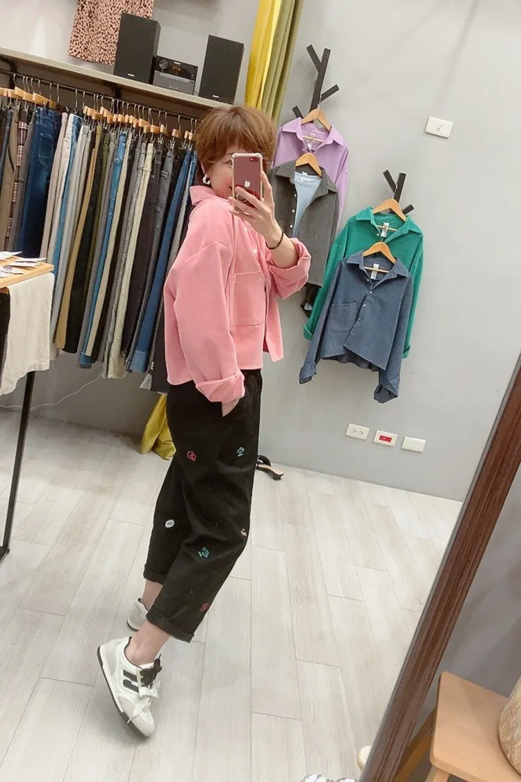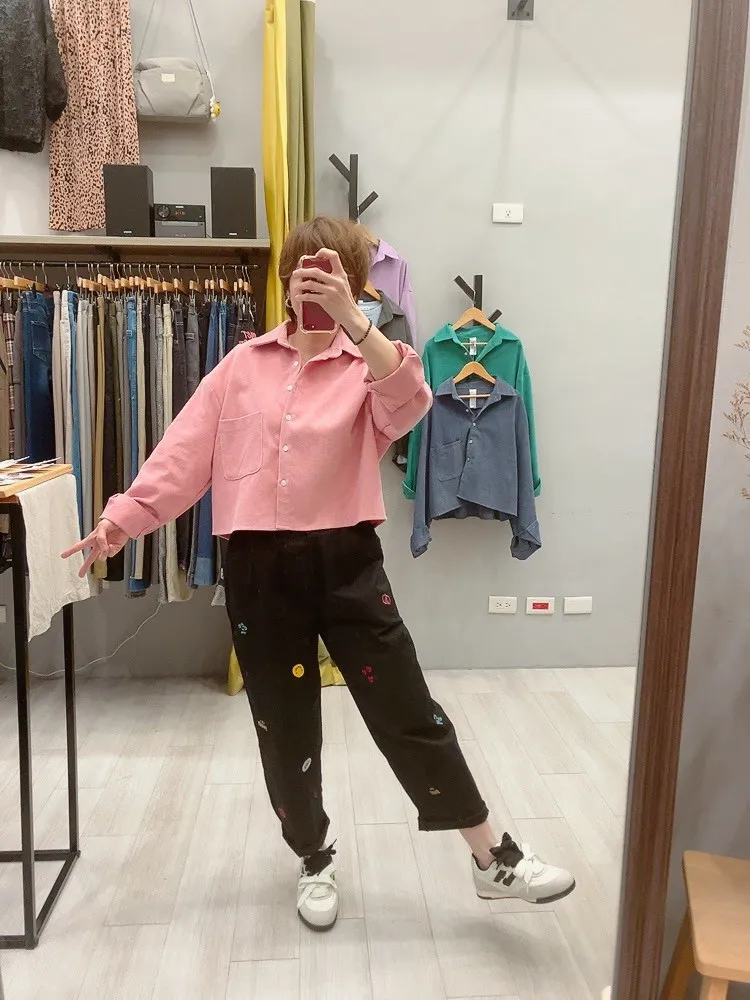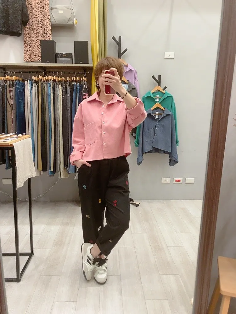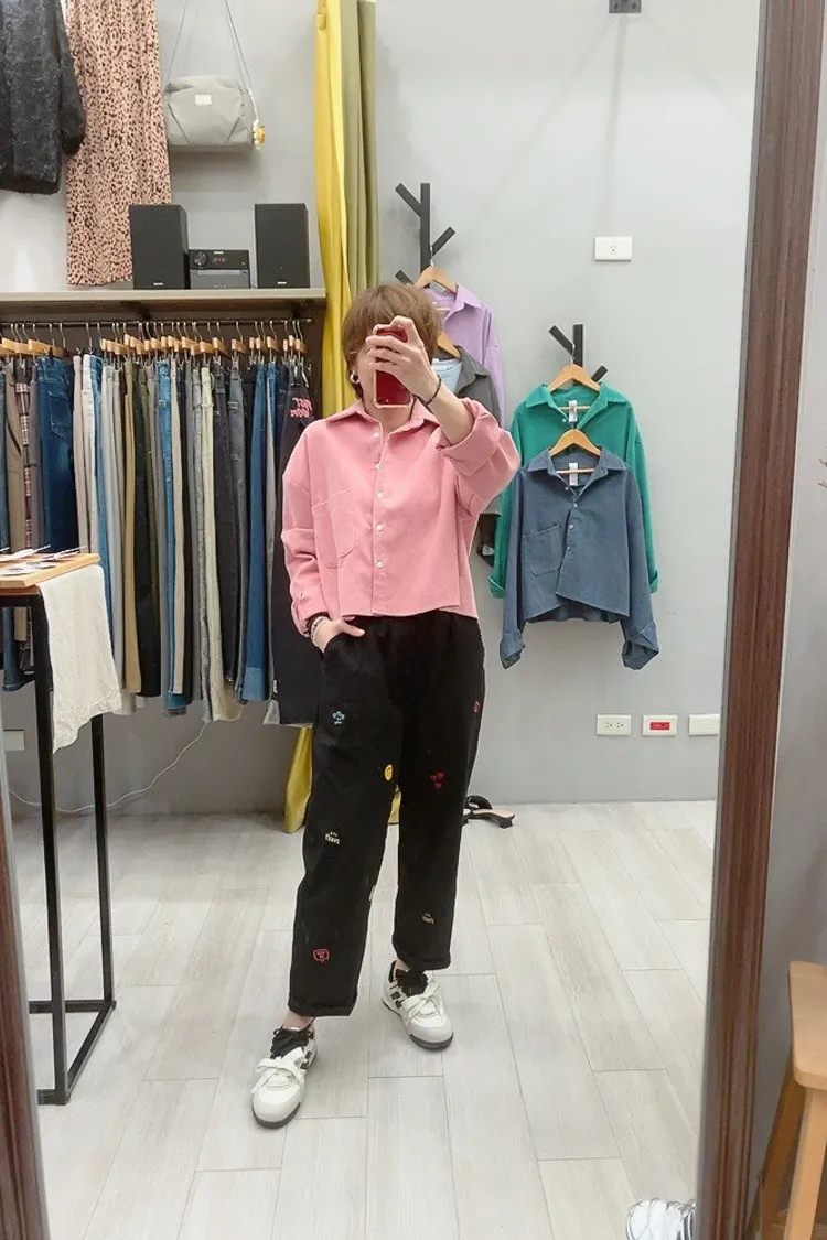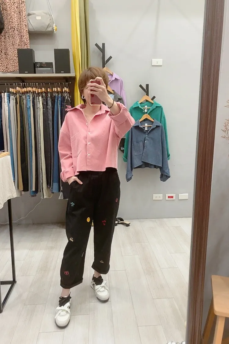 笑臉可愛徽章刺繡休閒褲