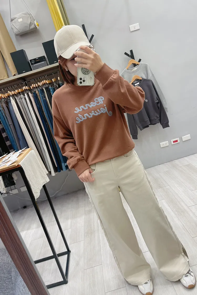 屁屁粉英字彎刀牛仔褲