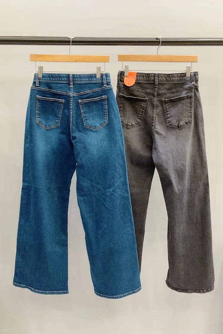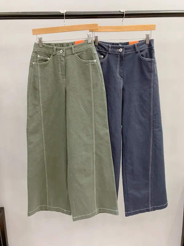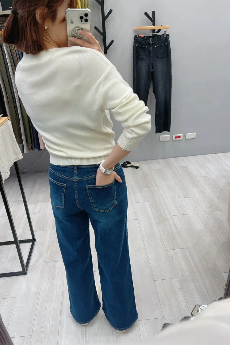 前車線雙口袋寬直筒牛仔褲