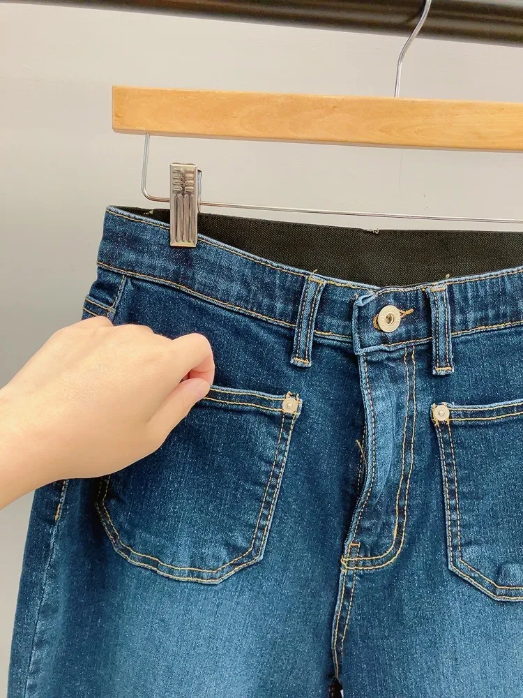 前雙口袋素面小直筒牛仔褲