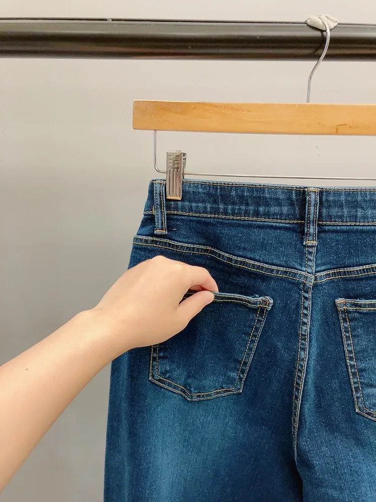 深藍丹寧搭配小直筒版型,