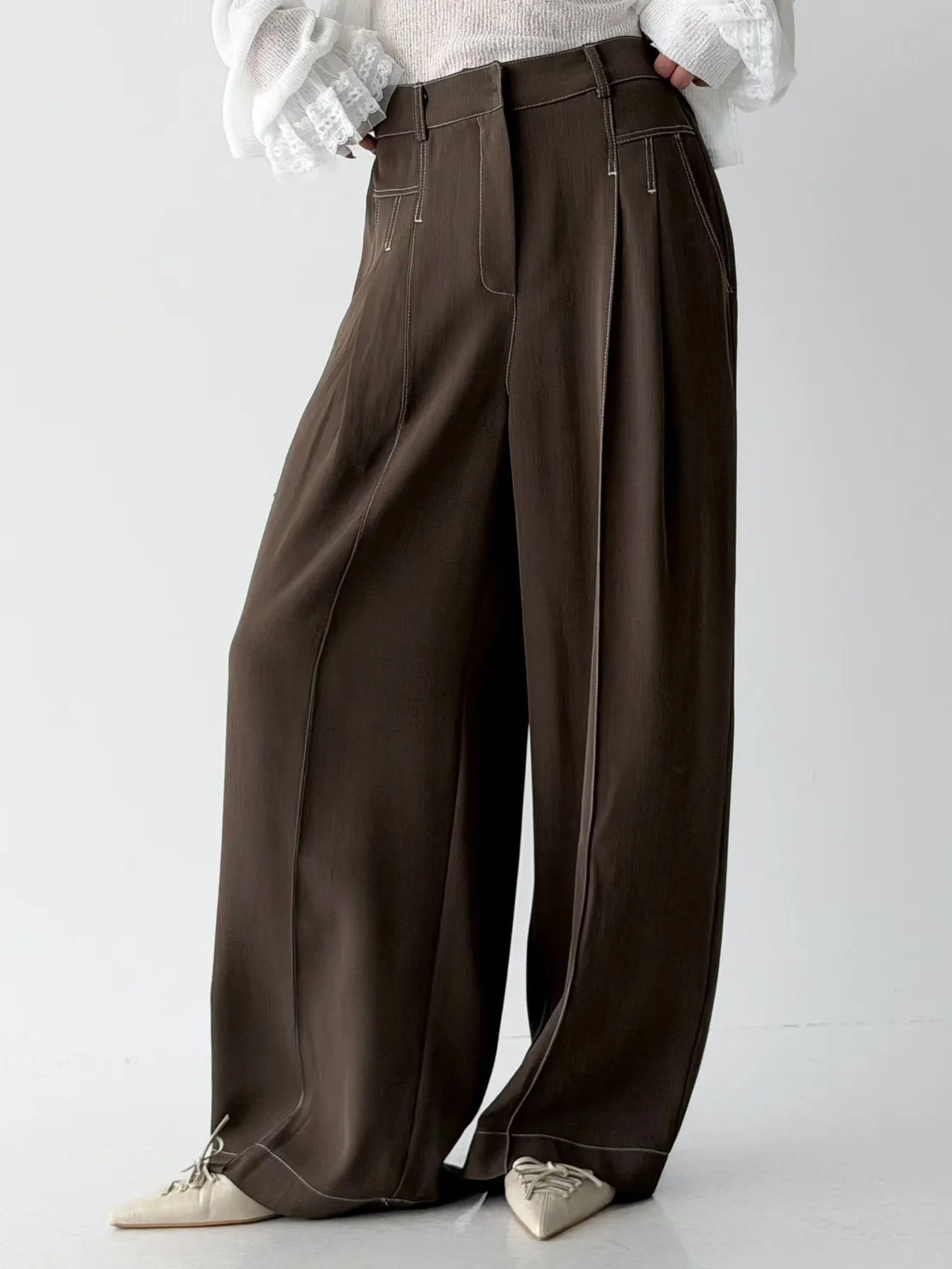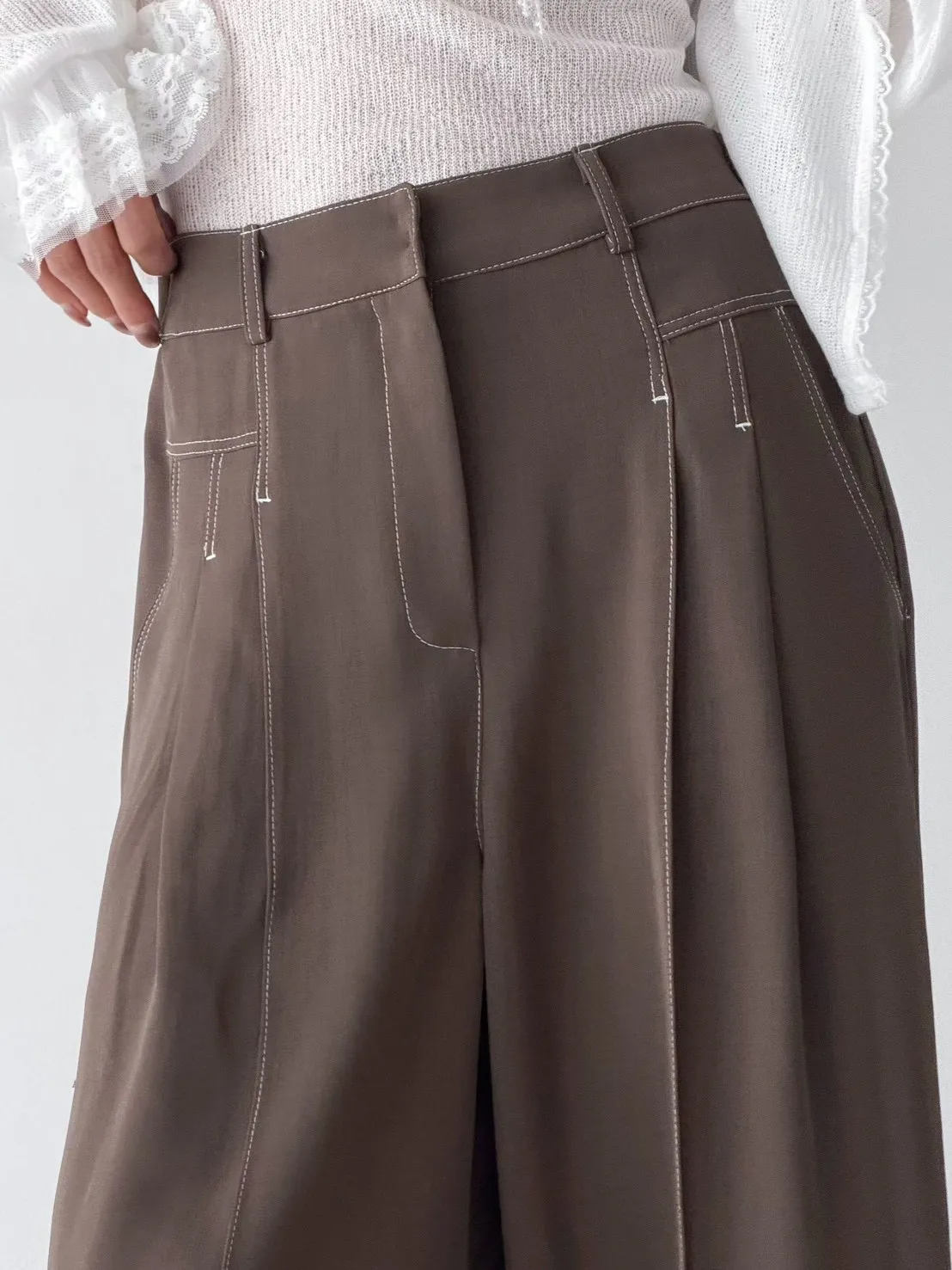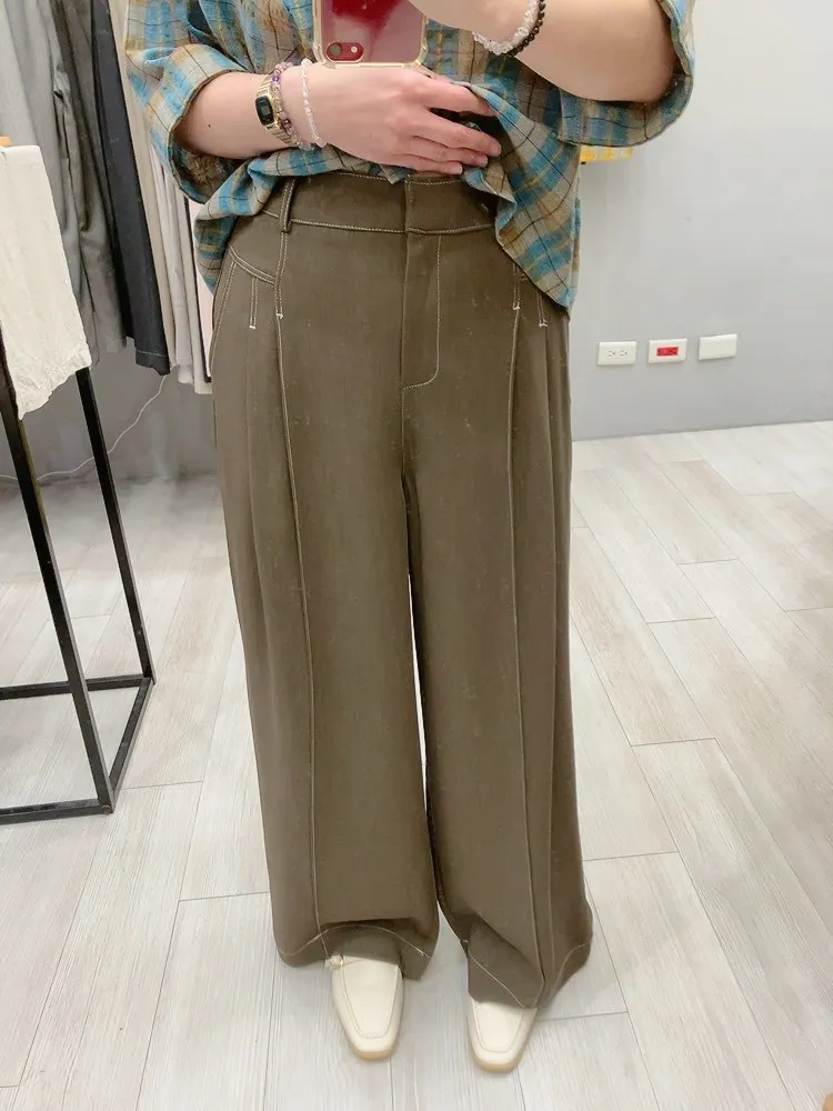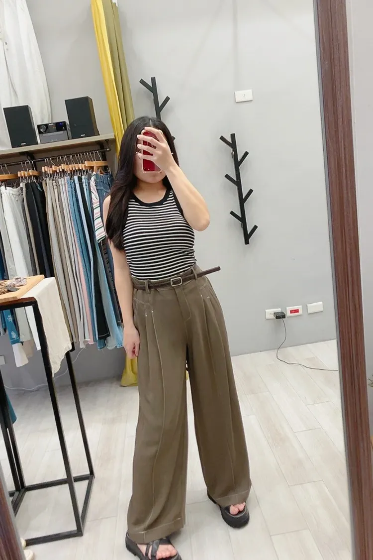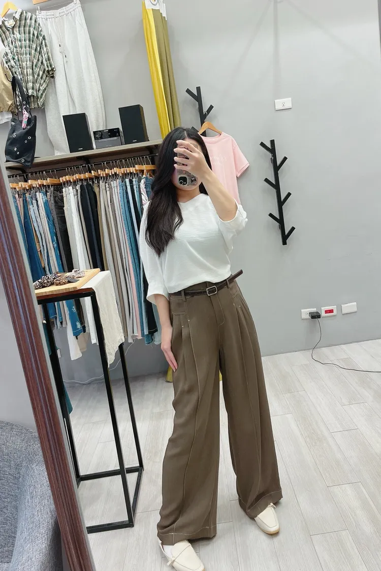 雙褶車白線休閒西褲裙