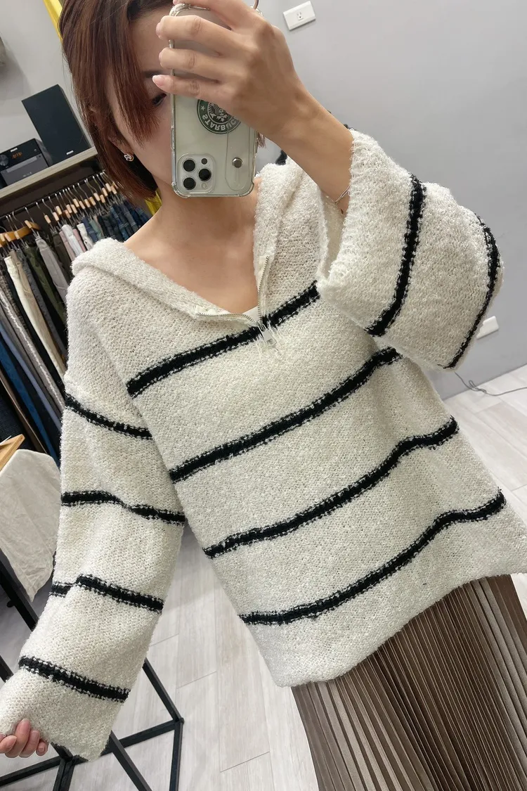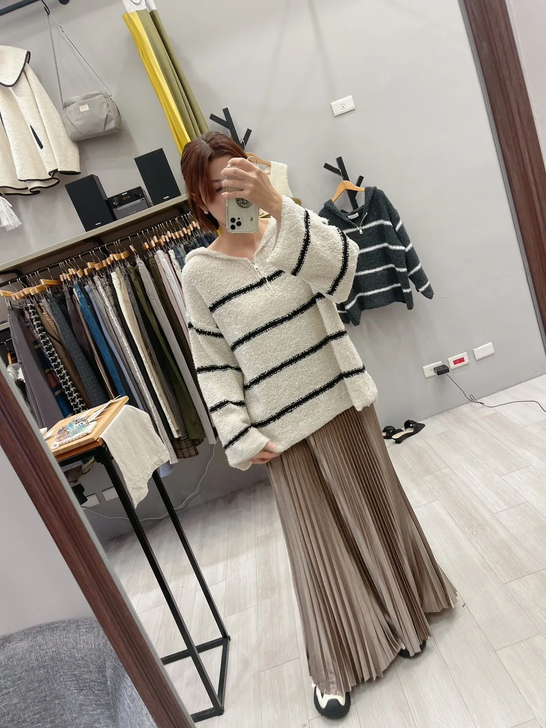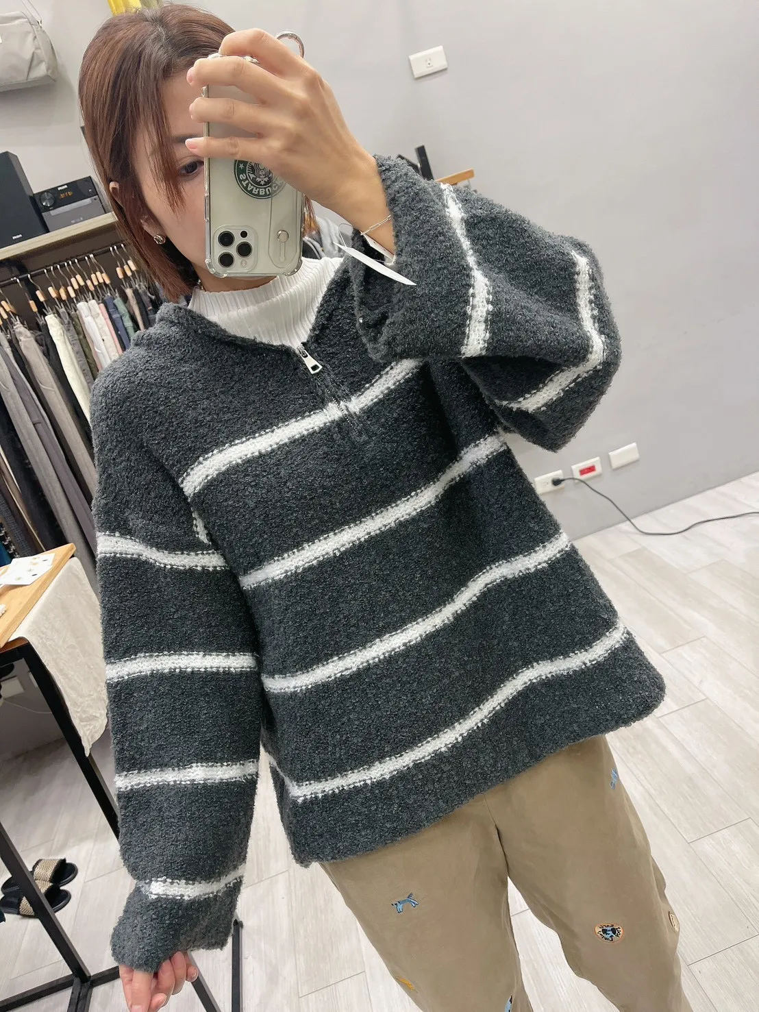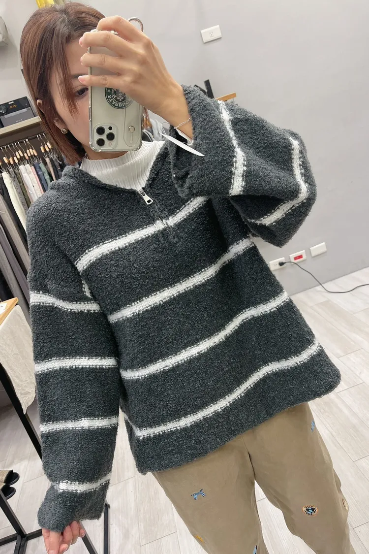 經典的橫條元素 耐看不退流行 半開拉鍊設計 層次感加分up!up!