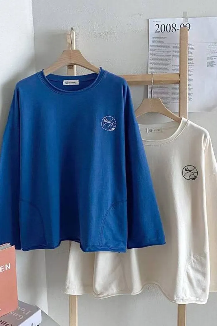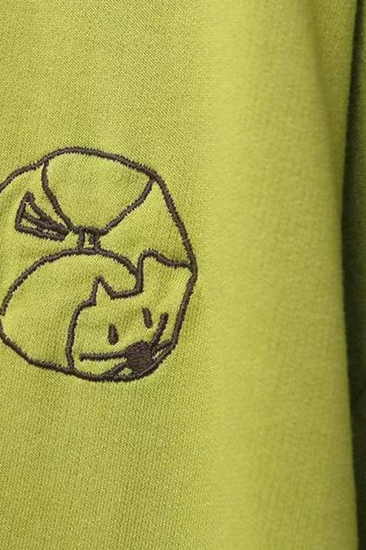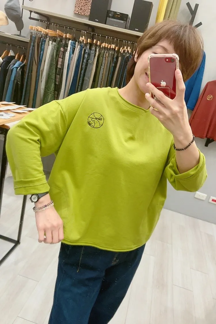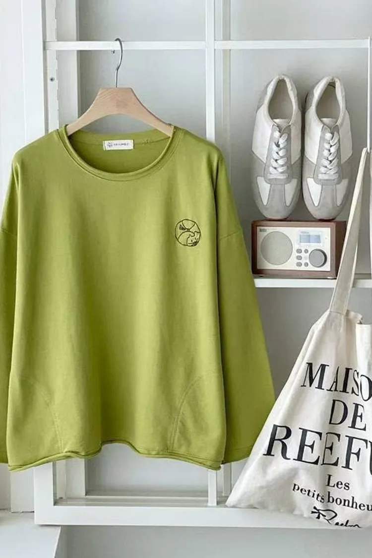 捲邊刺繡圓貓咪薄長袖