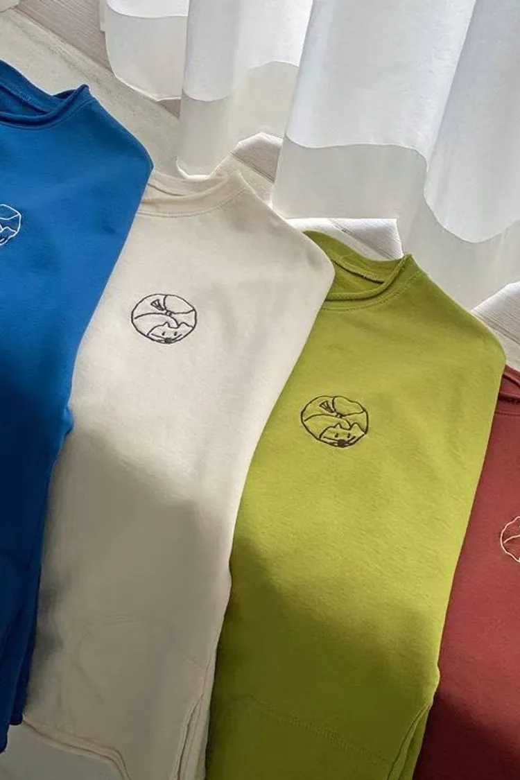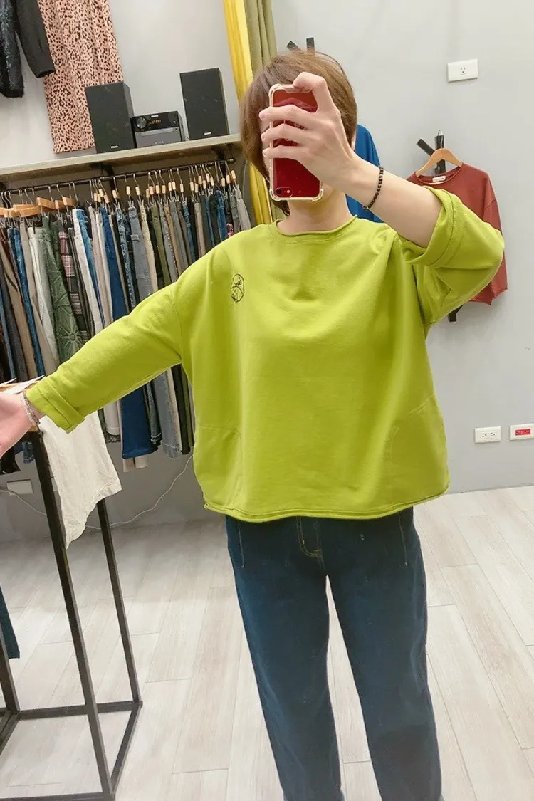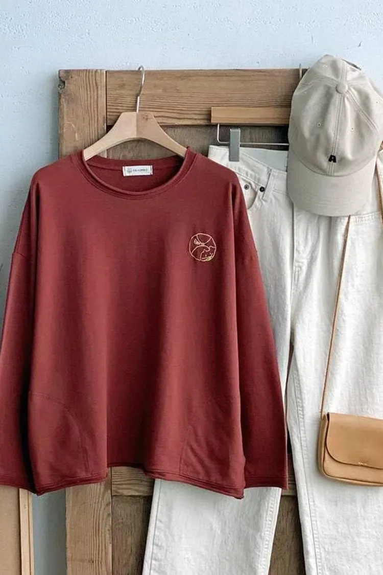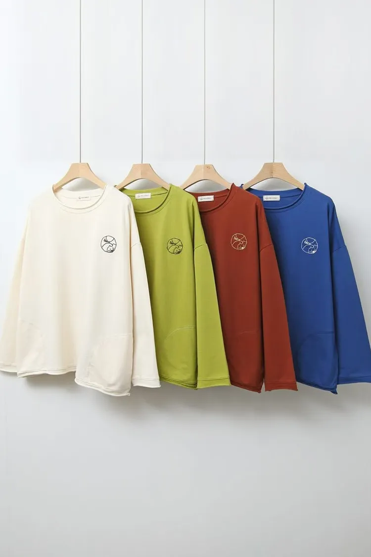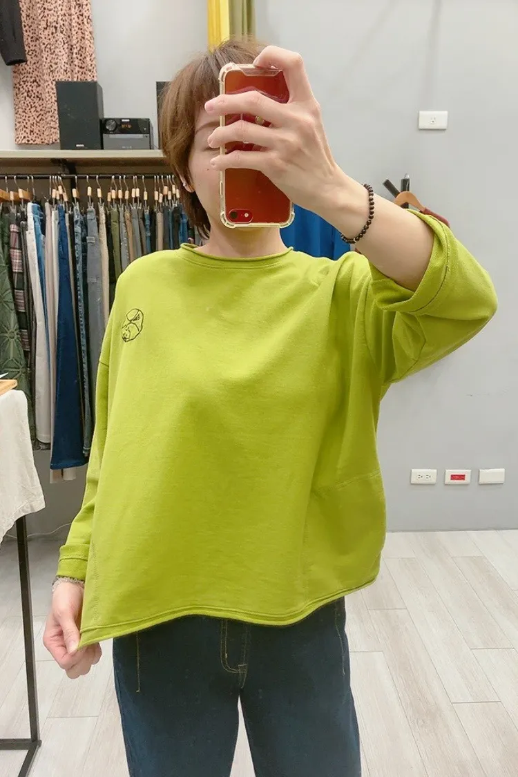 捲邊刺繡圓貓咪薄長袖