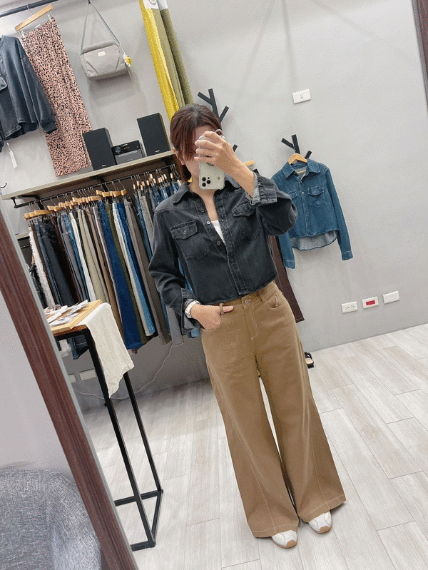 前立體車線霧色系寬直筒褲