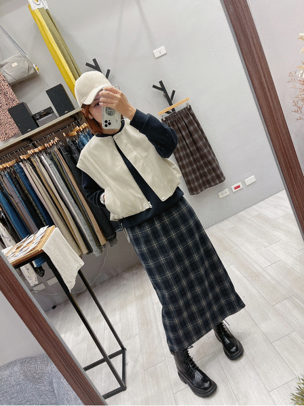 英倫格後衩直裙
