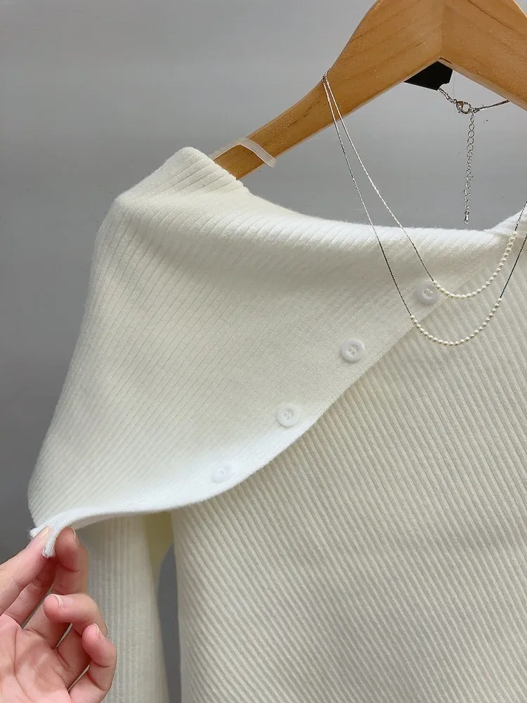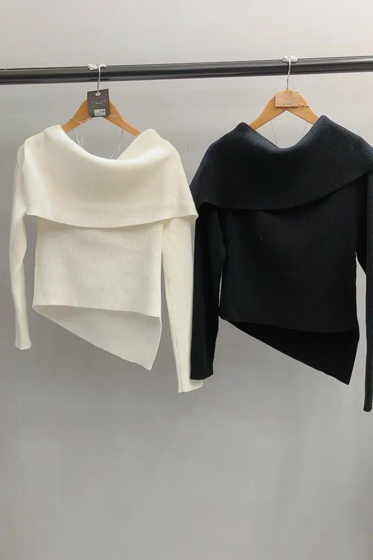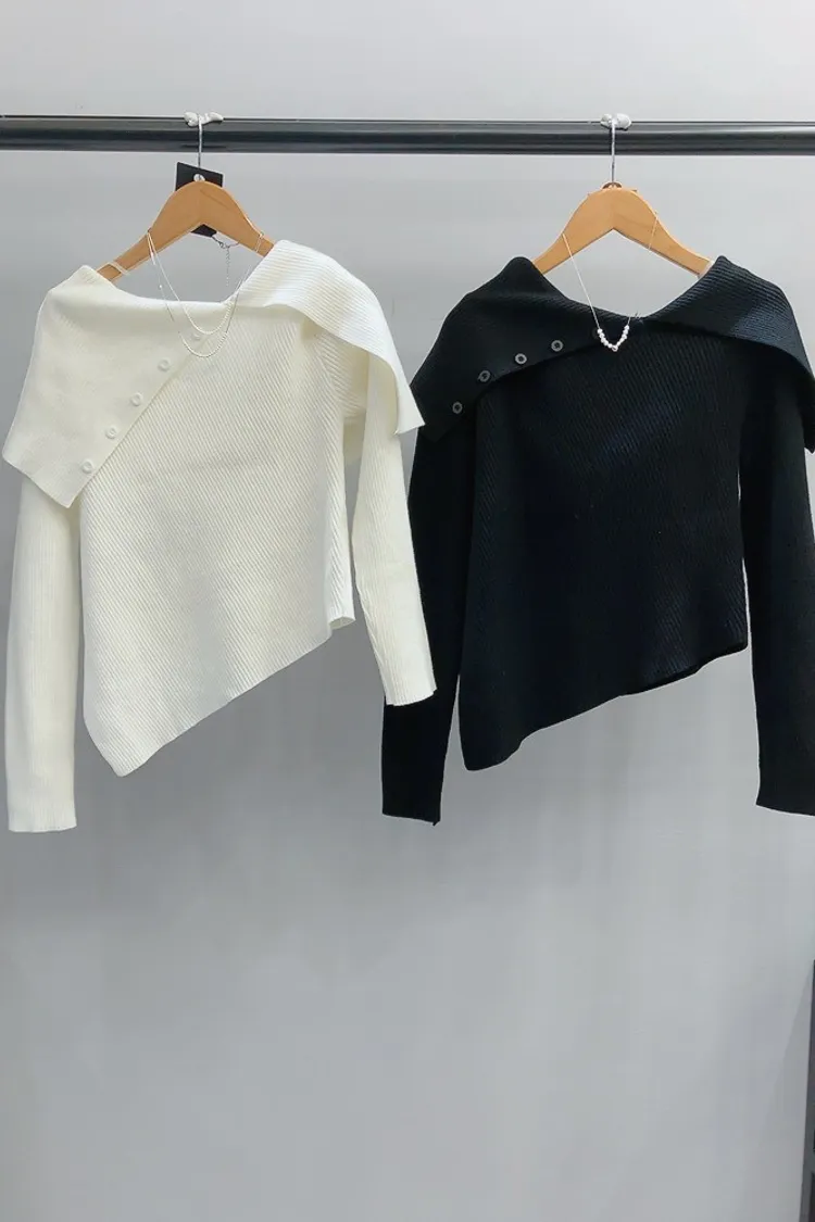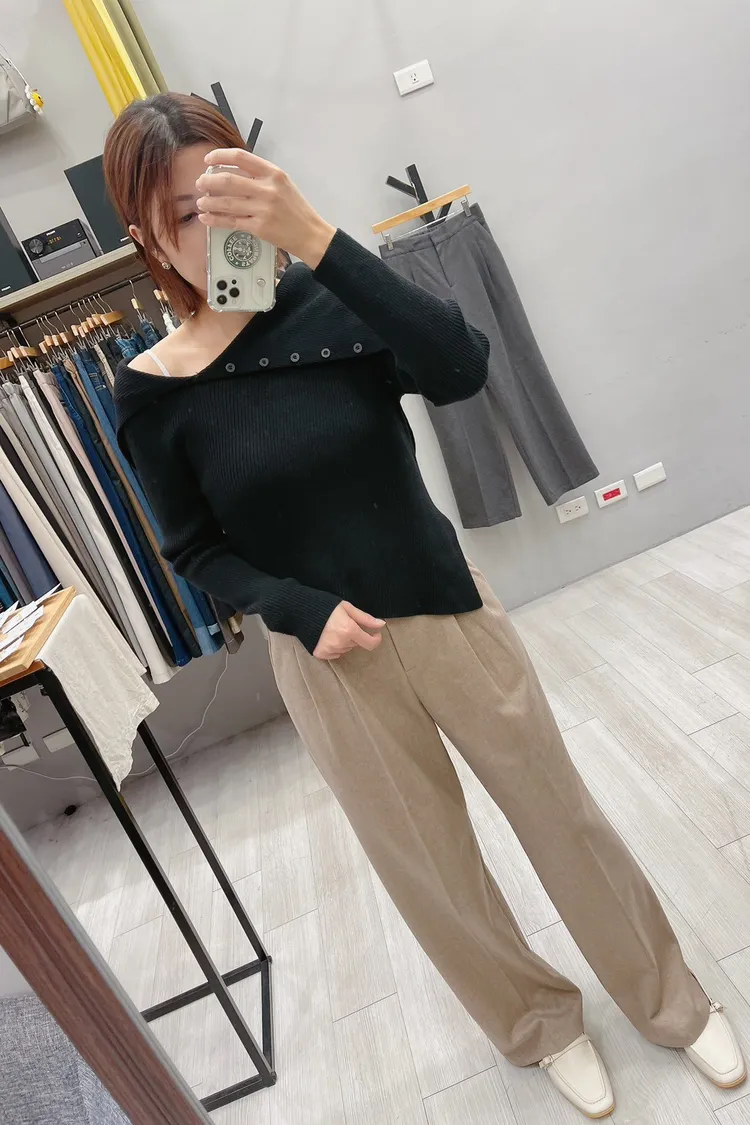 斜排釦螺紋大領厚針織衣