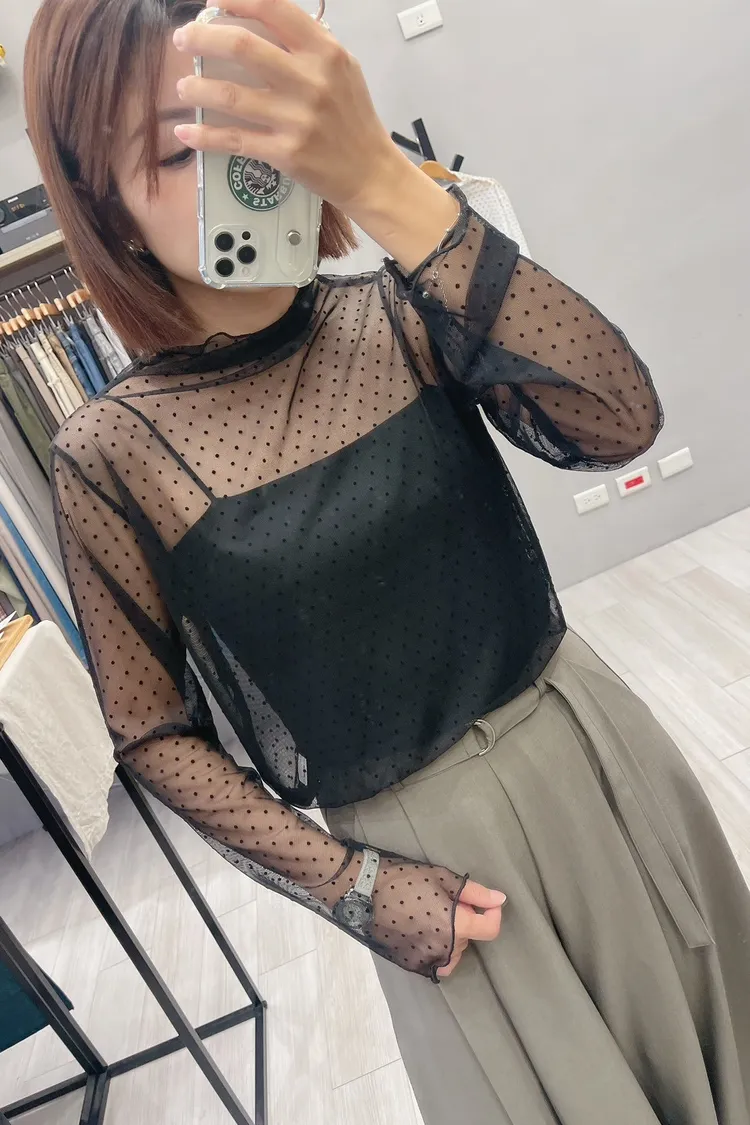 ! 經典圓點透膚設計,微露肌膚不失優雅。