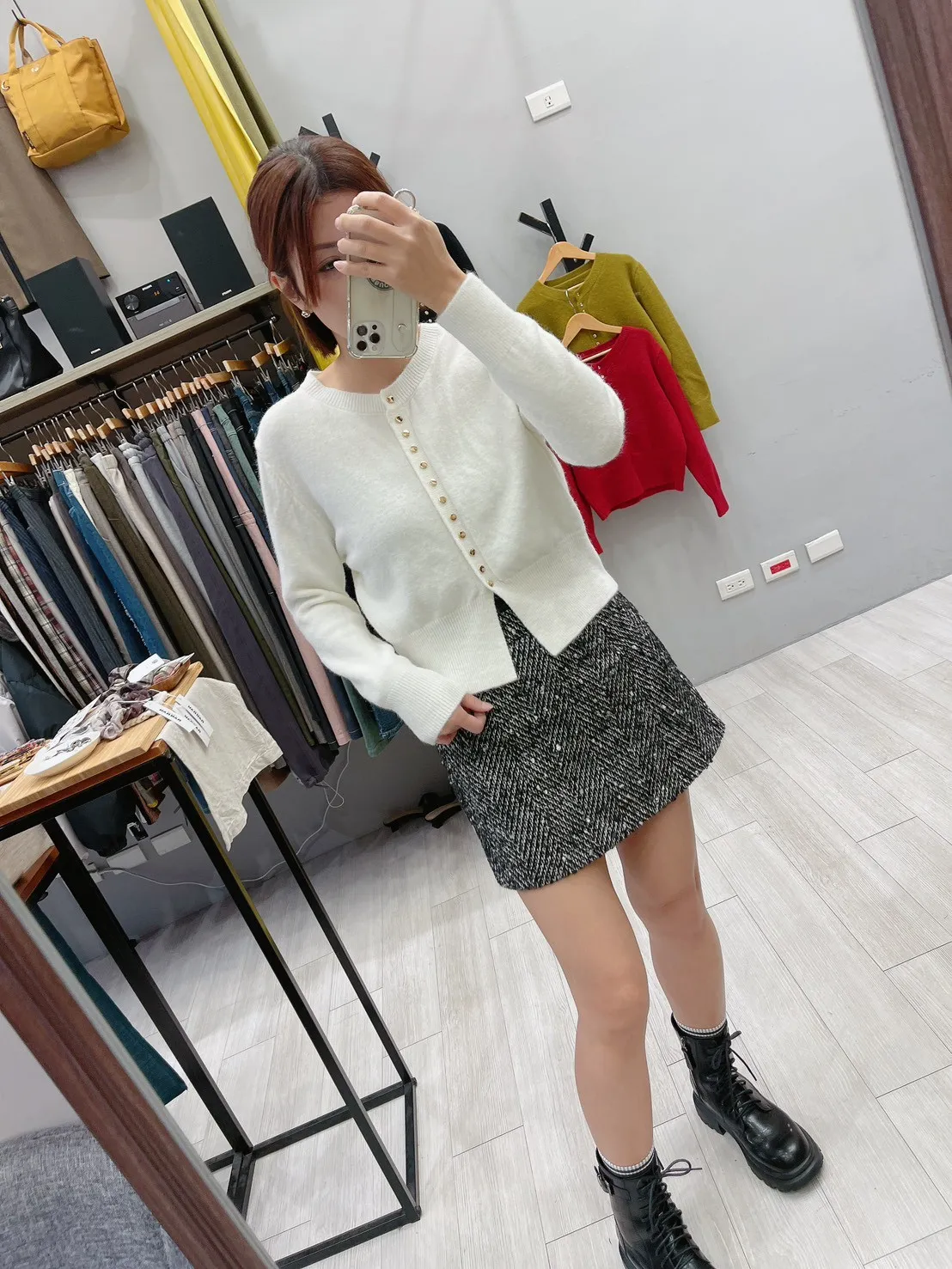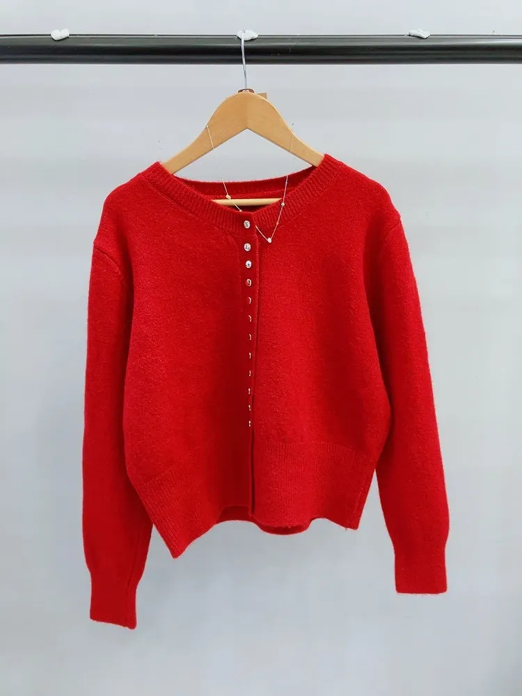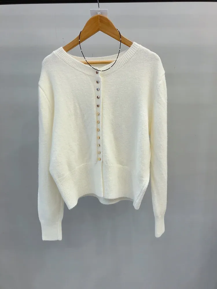 排亮金釦收腰合身毛衣