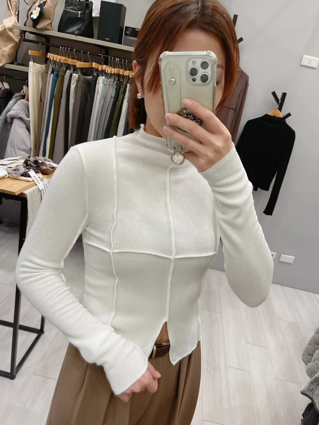 立體八宮格短版合身高領