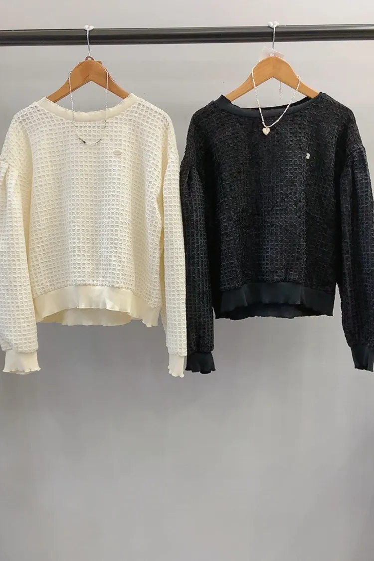 方格紋橢圓牌設計感上衣