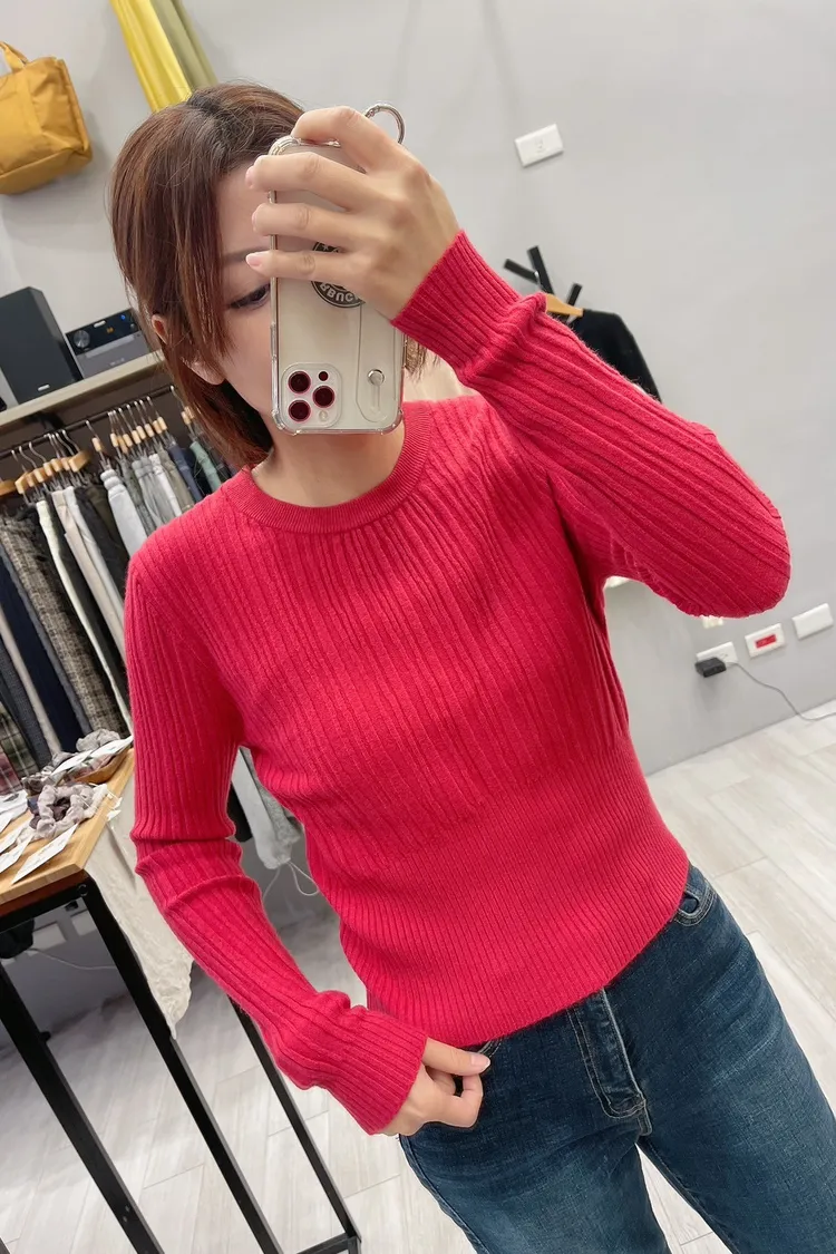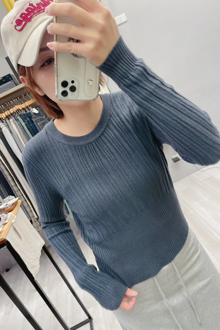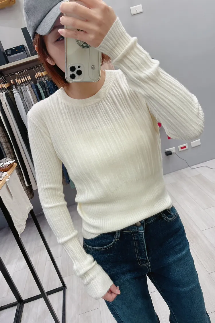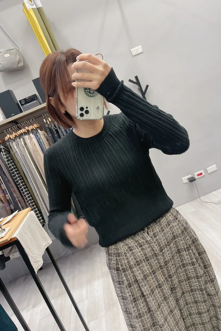 粗細拼接坑條圓領薄針織