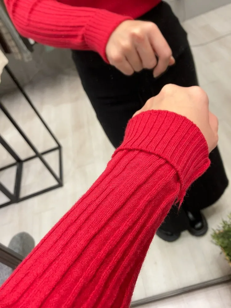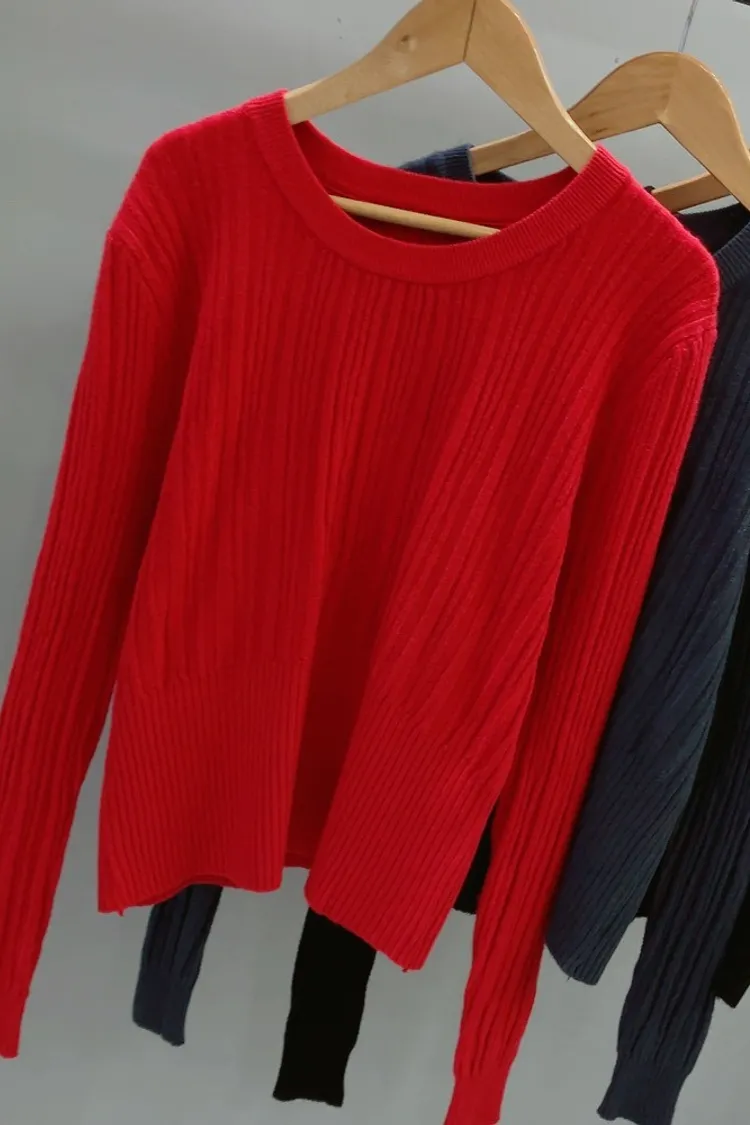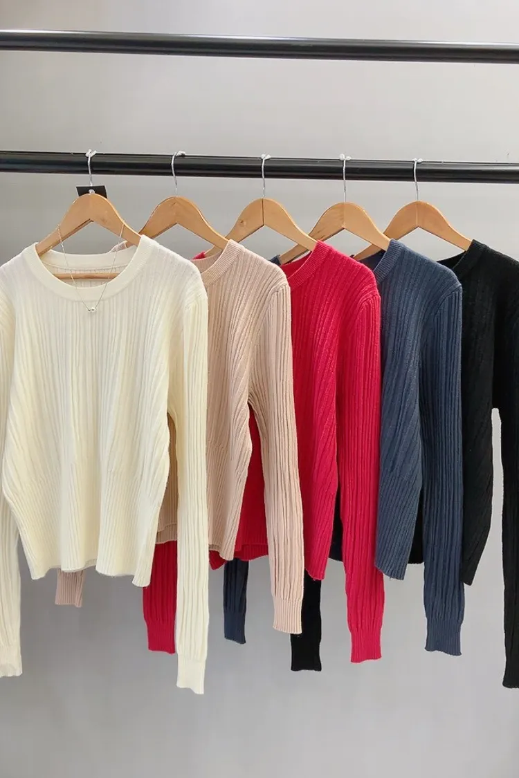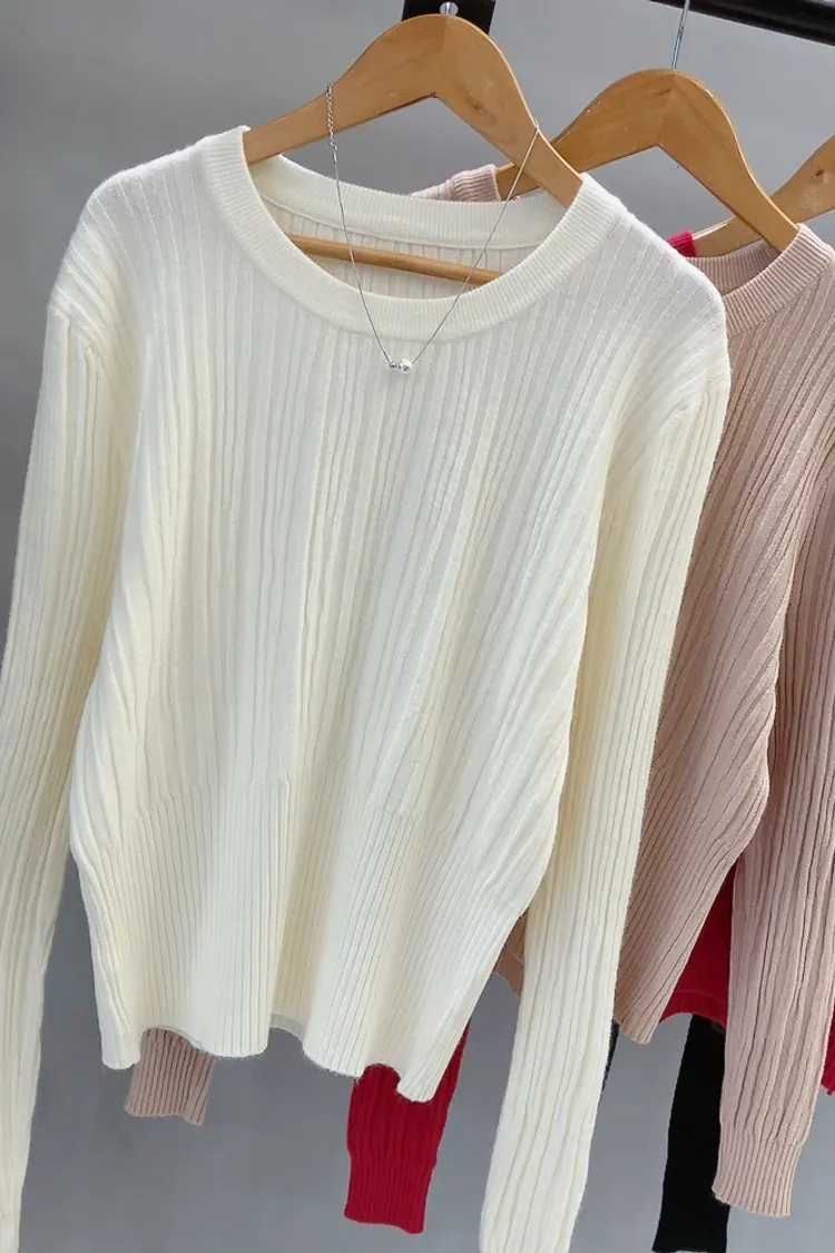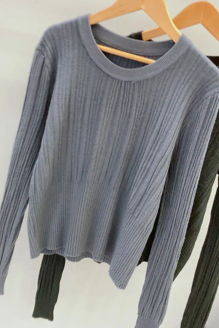 粗細拼接坑條圓領薄針織