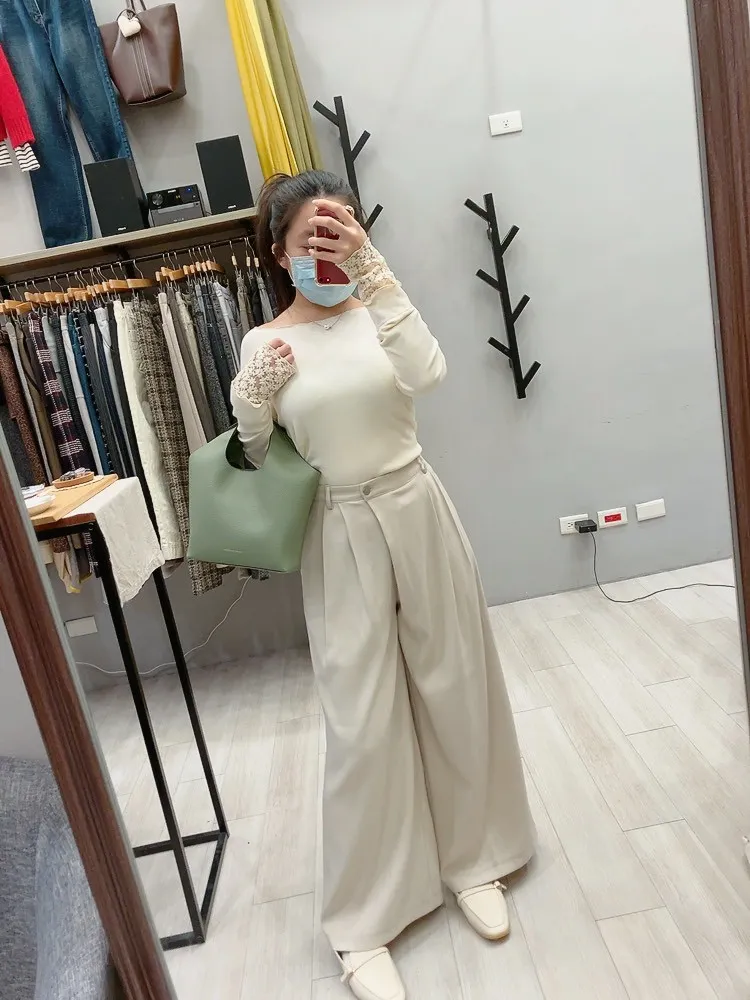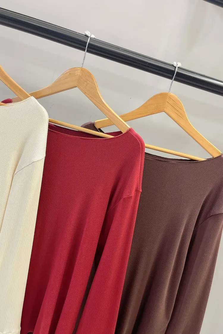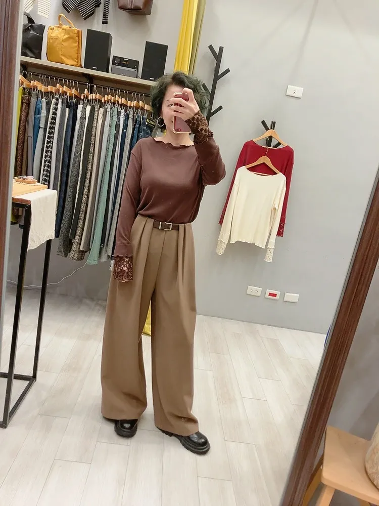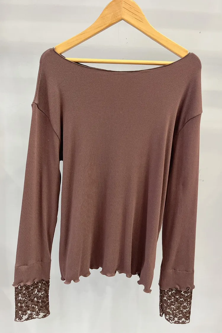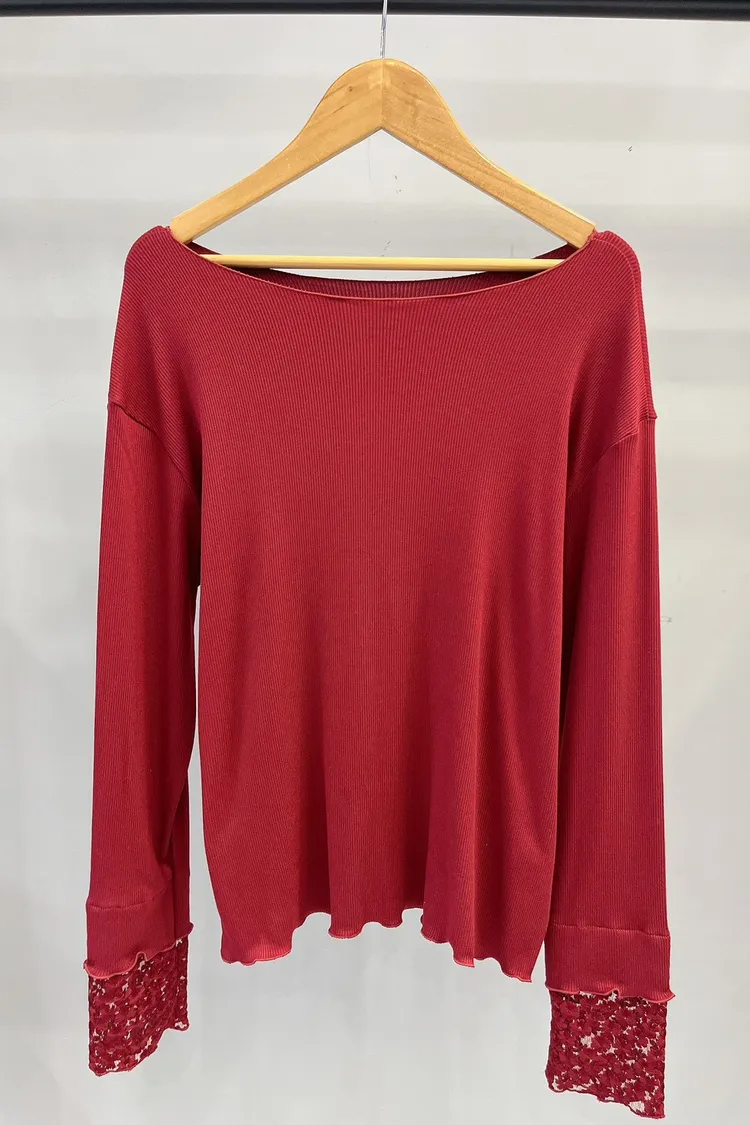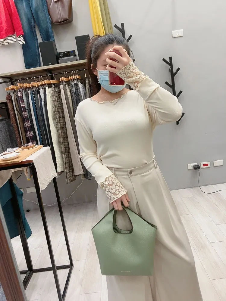木耳邊袖口刺繡小花螺紋打底衣