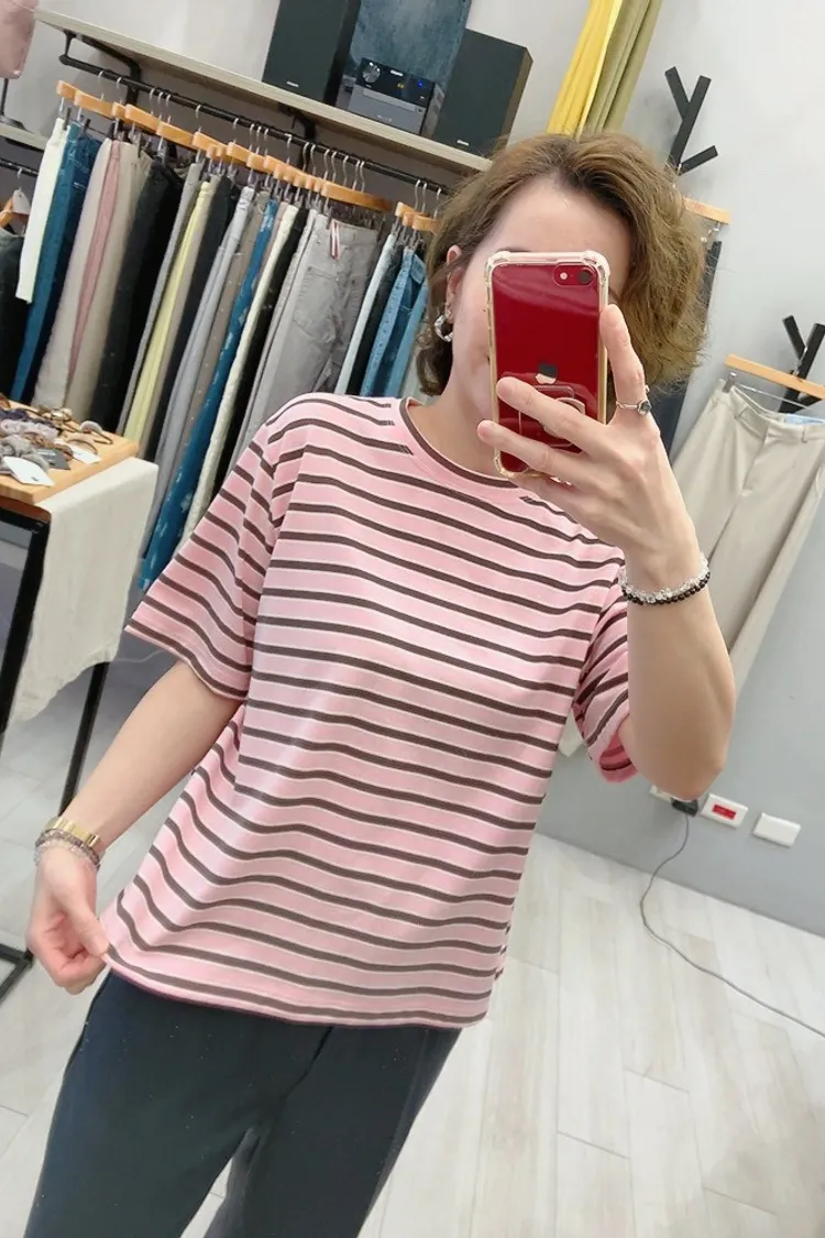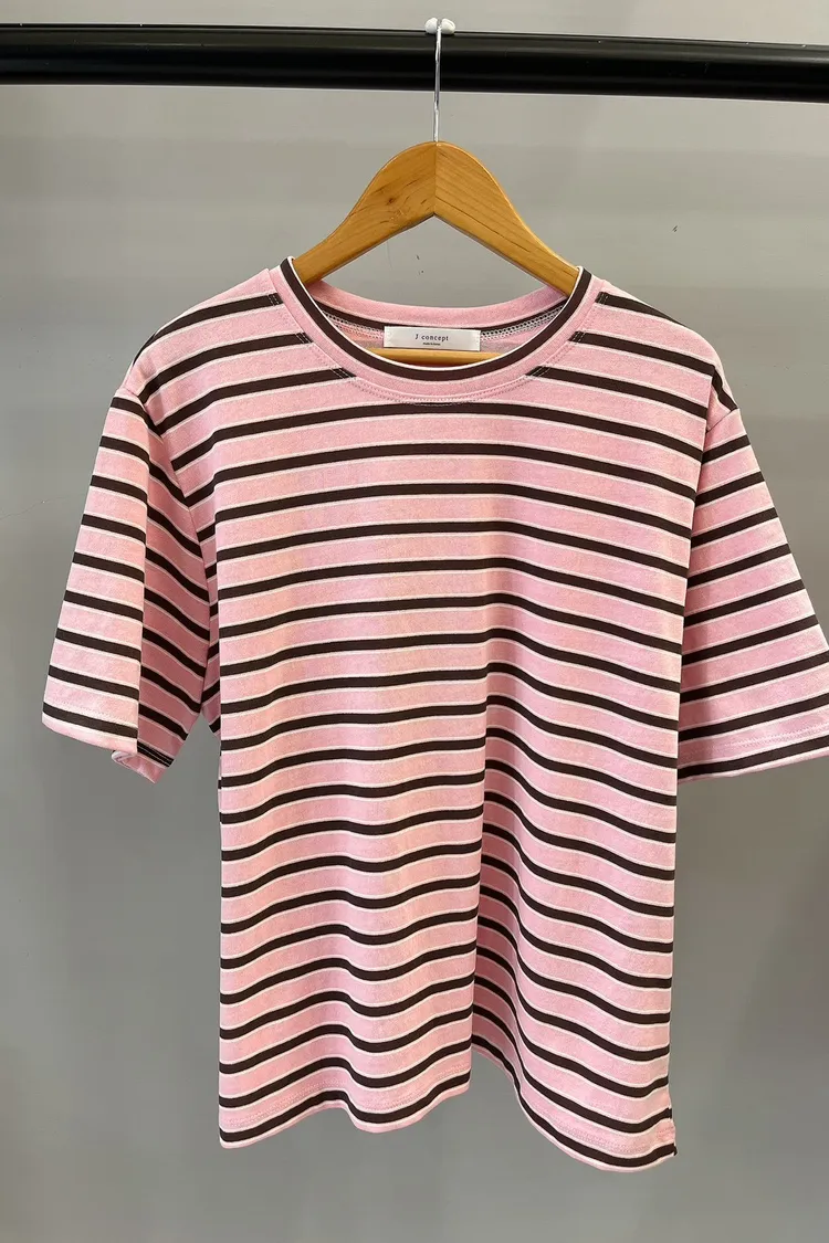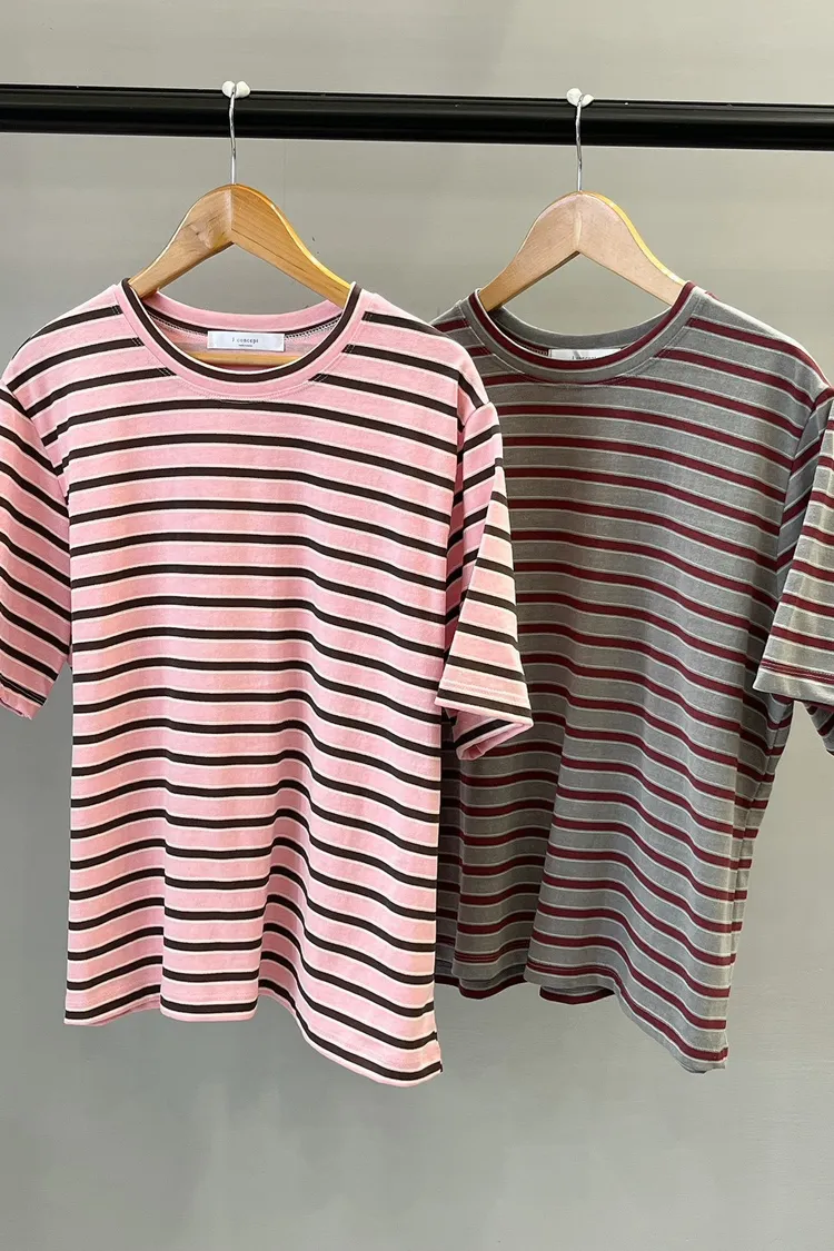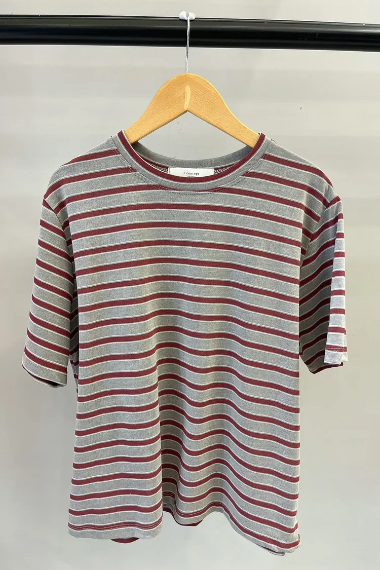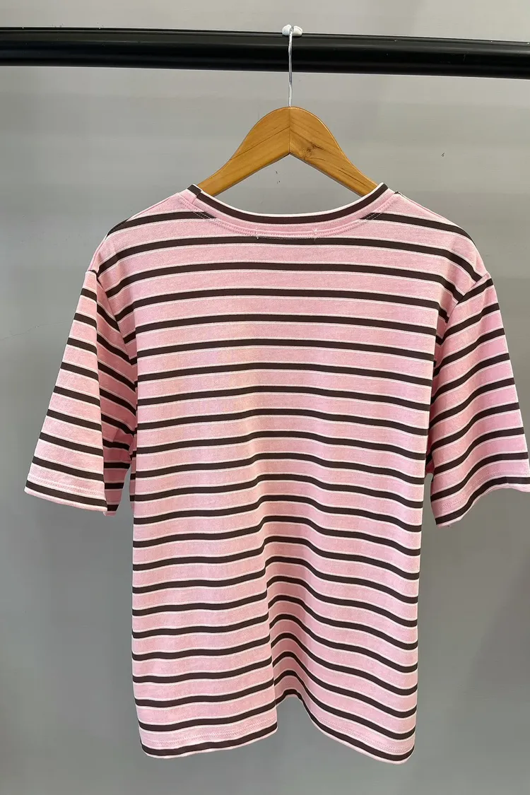 細夾心橫條T