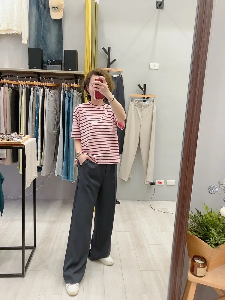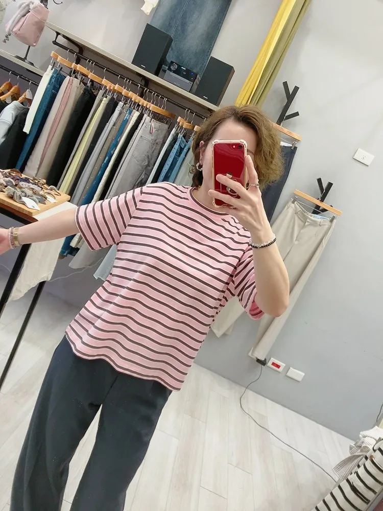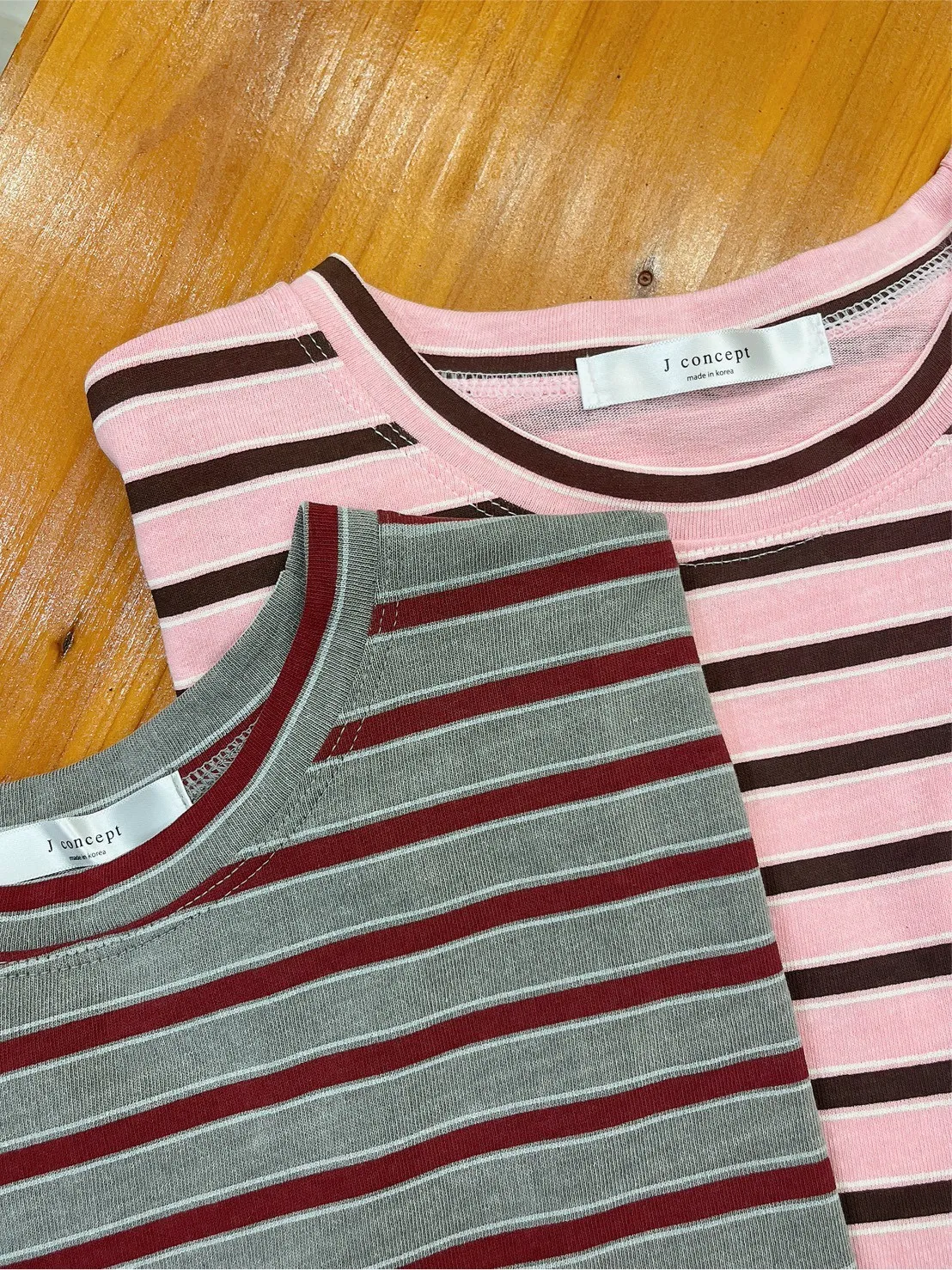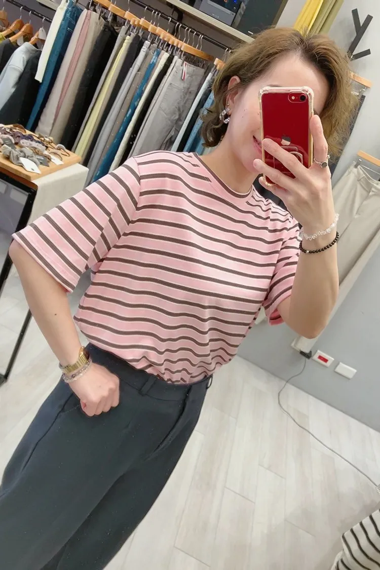 細夾心橫條T