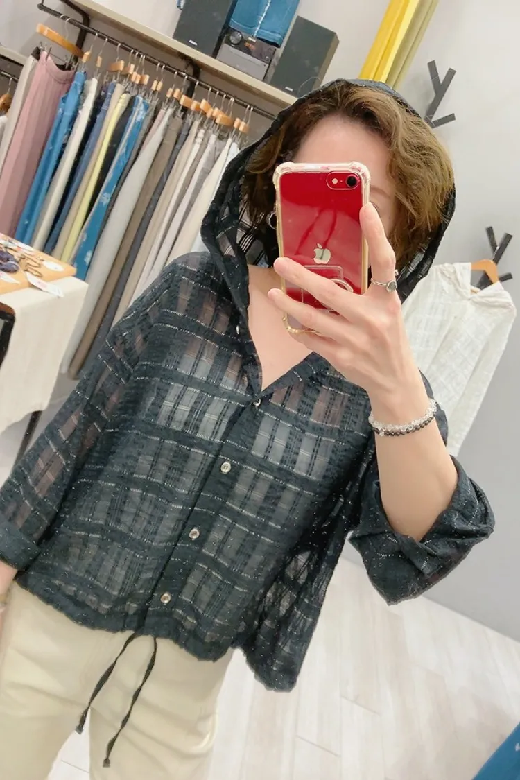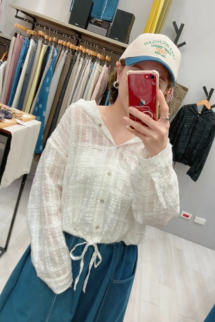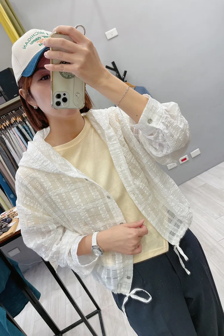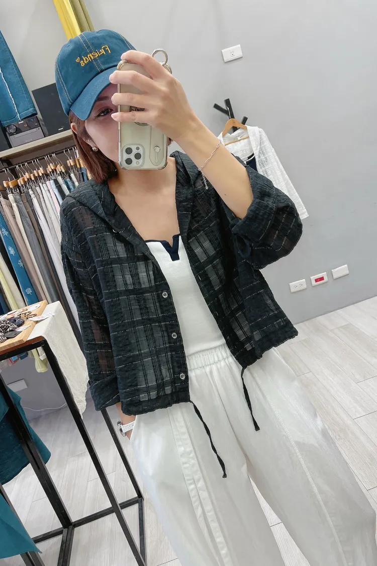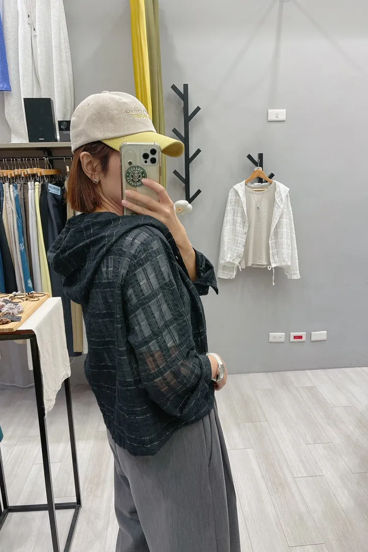 織閃閃格紋連帽小外套