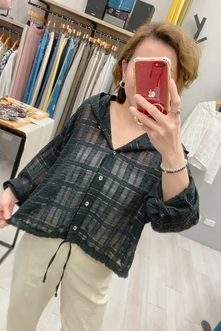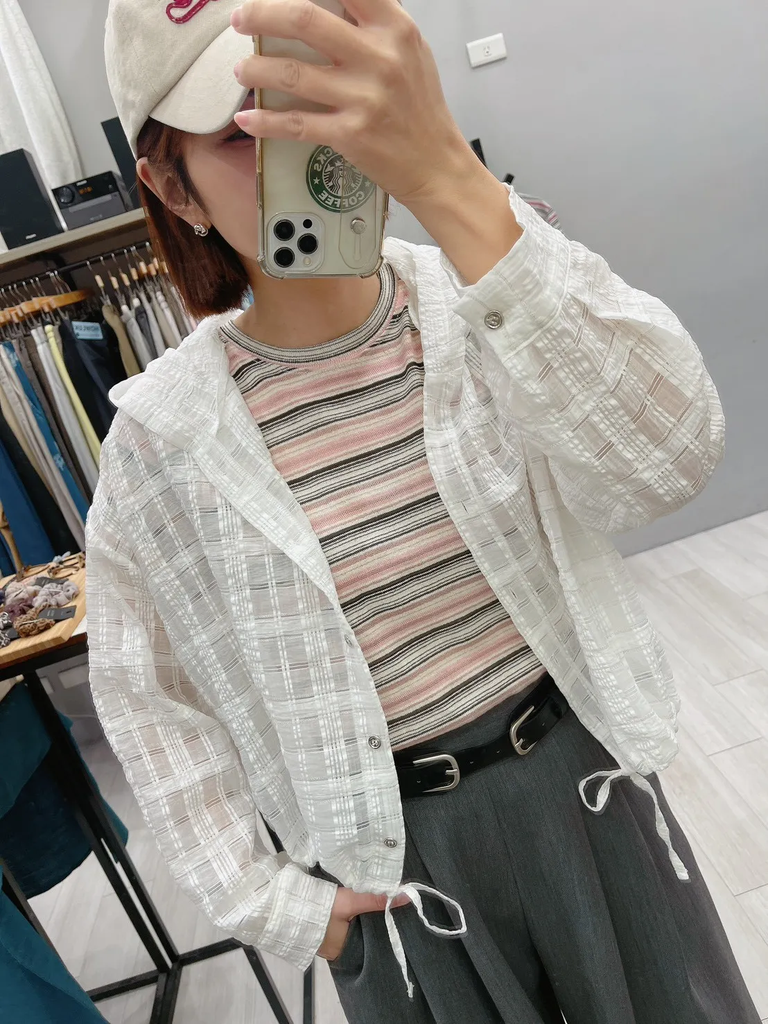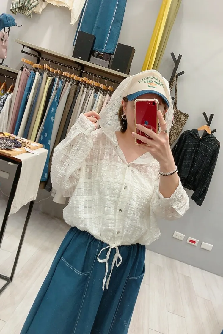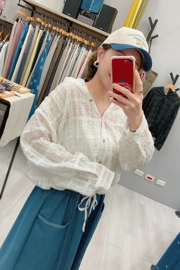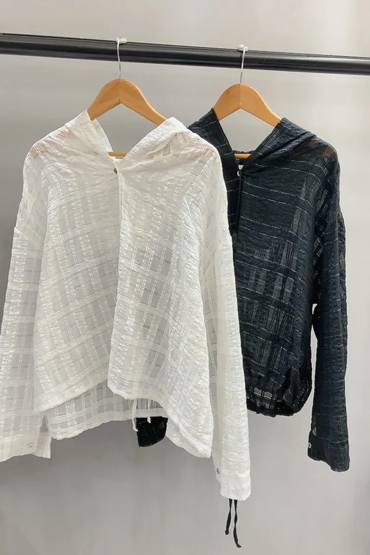 織閃閃格紋連帽小外套