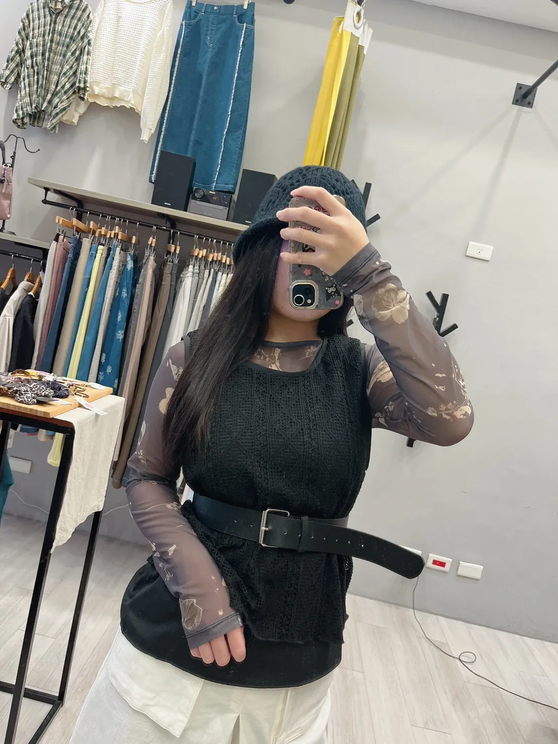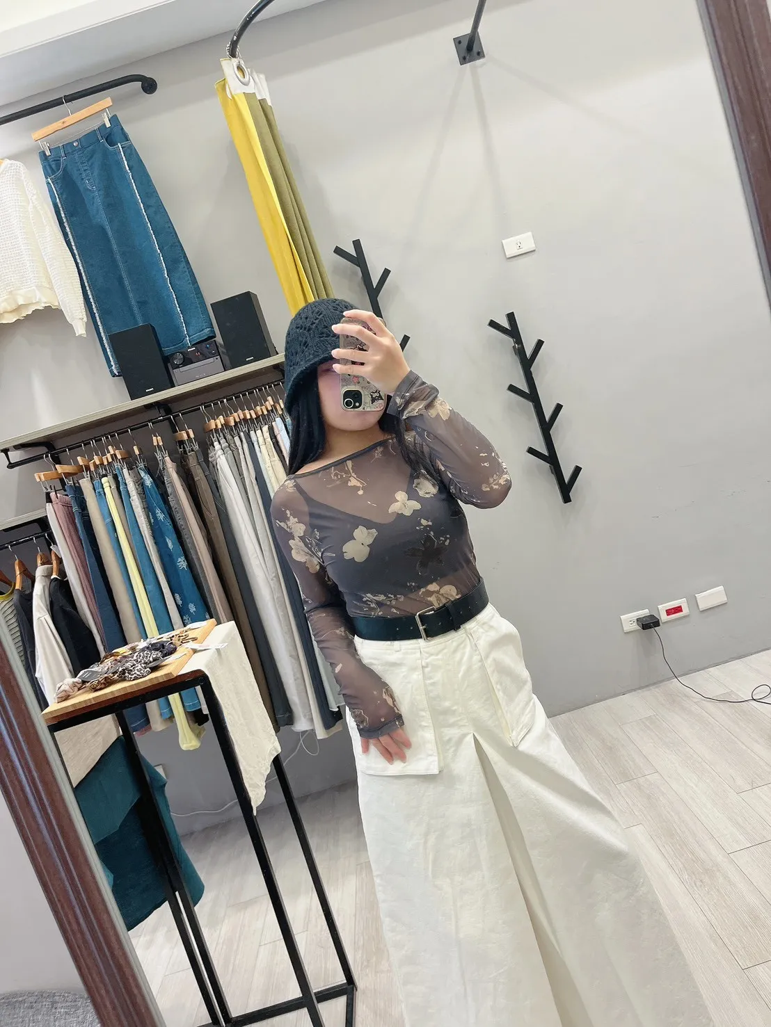 印花葉透膚打底